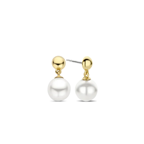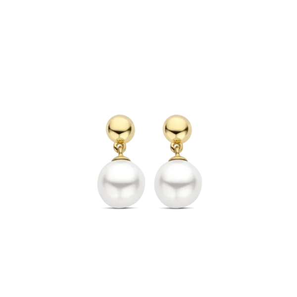 Aros plata 925 vermeil oro amarillo 18k con nacar central rodeado de circones. Tamaño 10 mm.