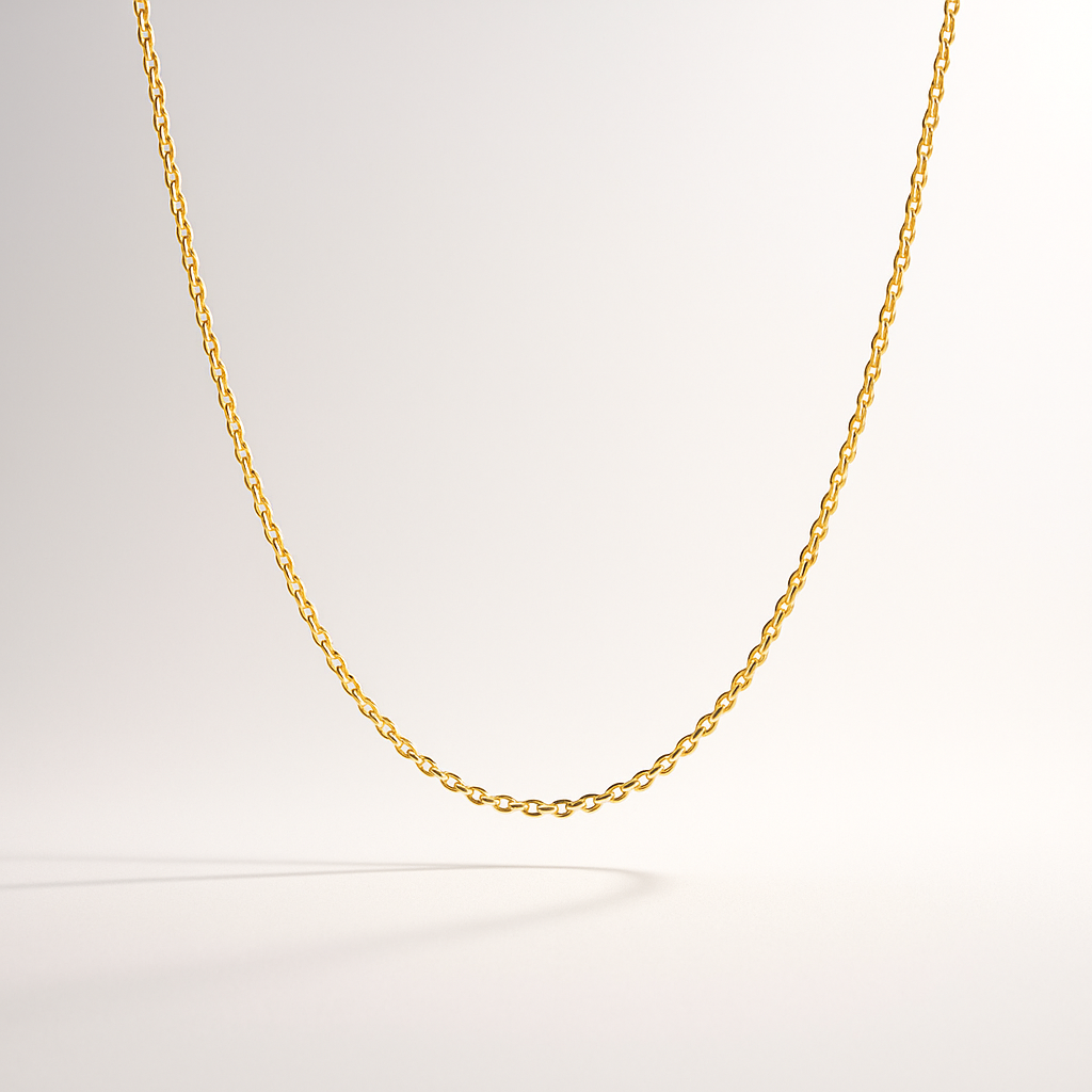 Cadena de Oro Amarillo 18k con diseño de eslabones tradicionales con un largo de 40 centimetros y un peso de 1.2 gramos.