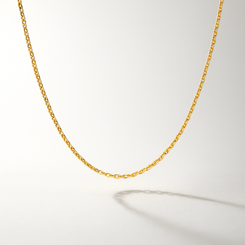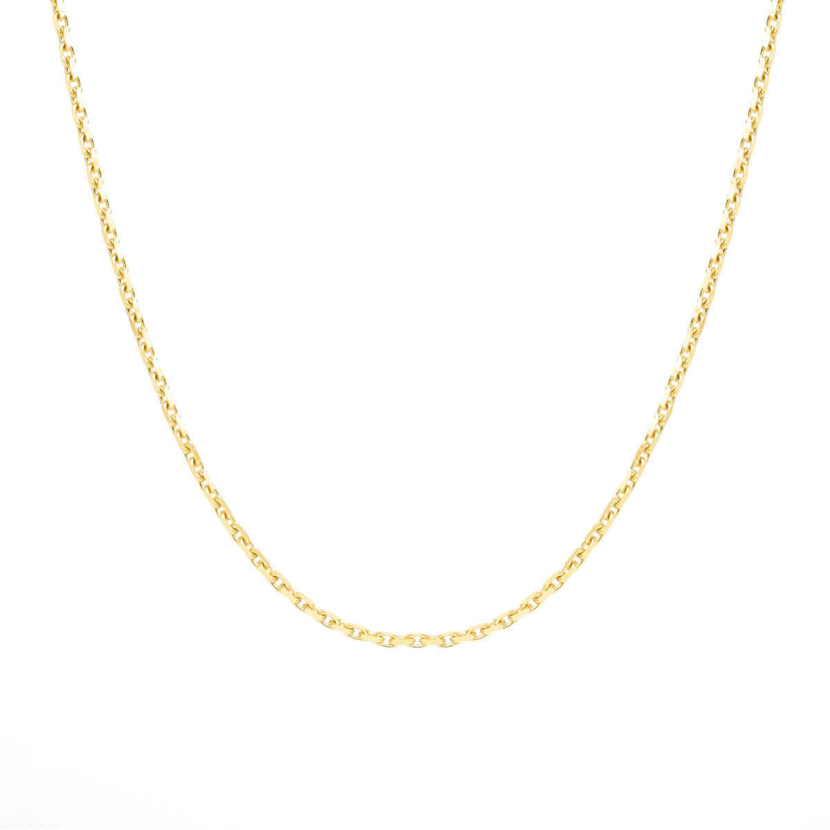 Cadena de Oro Amarillo 18k con diseño de eslabones tradicionales con un largo de 45 centimetros y un peso de 1.3 gramos.