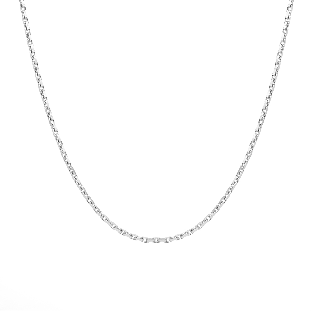 Cadena de Oro Blanco 18k con diseño de eslabones tradicionales con un largo de 45 centimetros y un peso de 1.3 gramos.