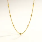 Collar de plata esterlina con recubrimiento en oro amarillo 18k diseño de cadena de eslabones con cuentas en plata. Largo 45cm