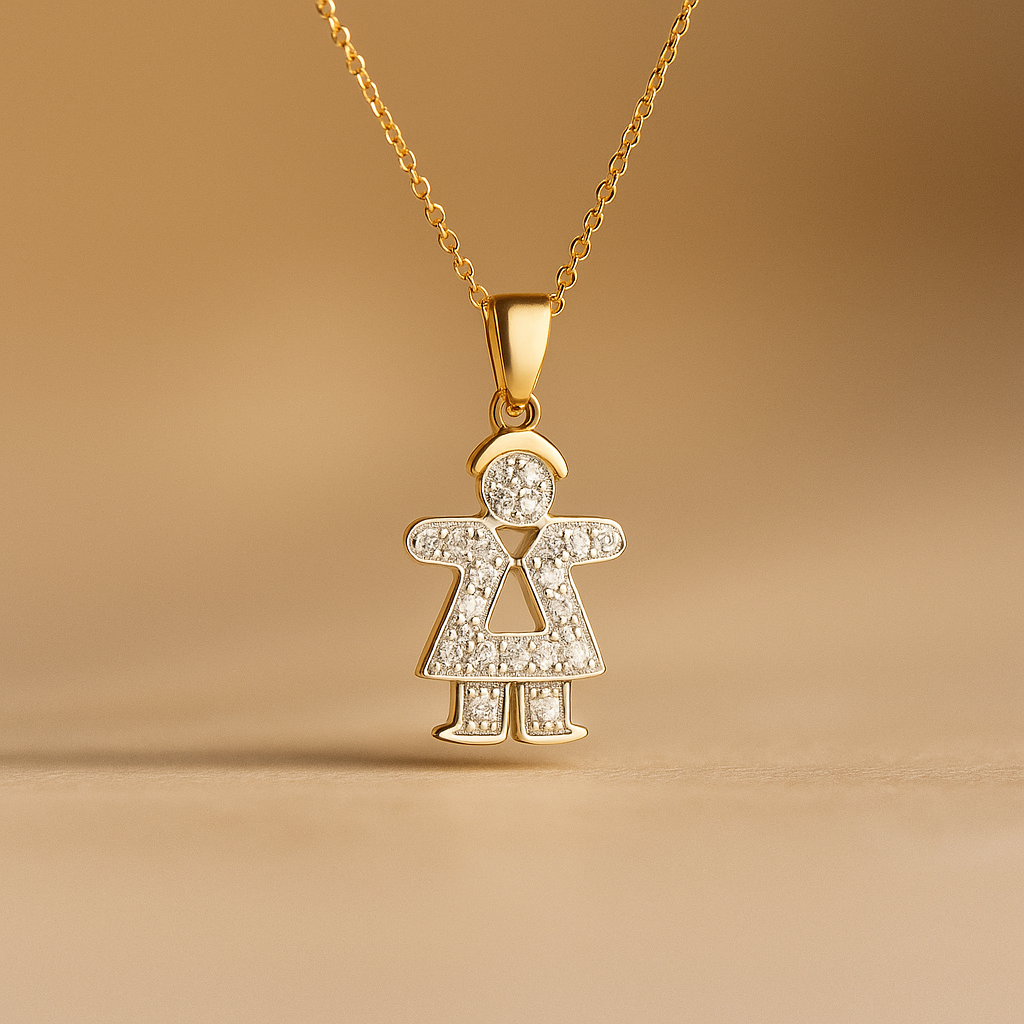 Colgante Niñita Oro Amarillo 18K Con Brillantes