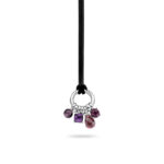 Colgante TI SENTO de plata 925 con cuarzo violeta pulido, amatistas facetadas en forma de gota, forma cojin y redondo, con un cordón negro de 45cm con cadena de alargue.