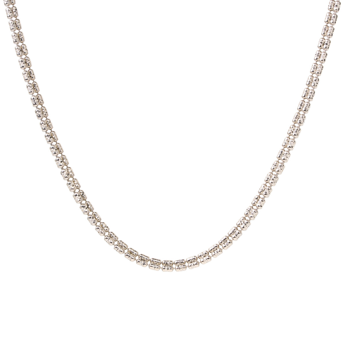 Collar de Plata esterlina con diseño de linea doble de cuentas diamantadas con un largo de 43 centimetros, cierre mosquetón.