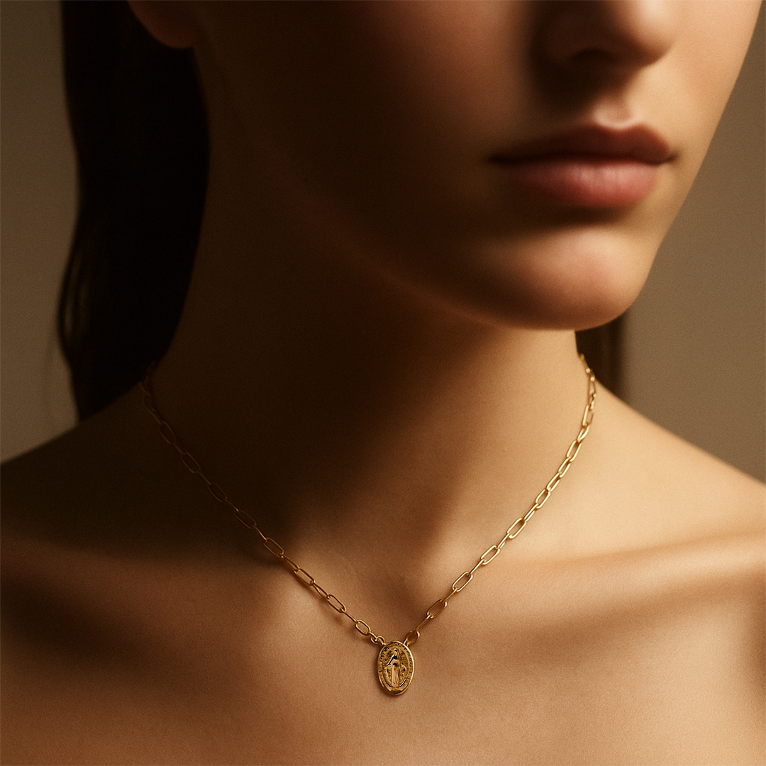COLLAR ESLABONES CON VIRGEN MILAGROSA