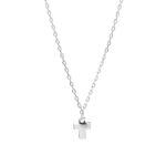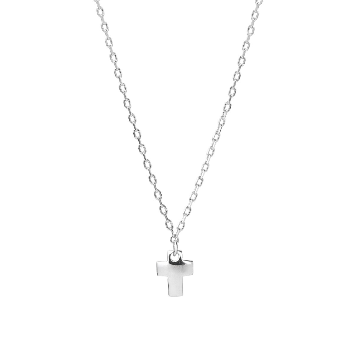 Collar de plata esterlina 925 con diseño de cadena de eslabones redondeada tradicional con un colgante de cruz mini. Largo 43cm