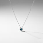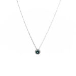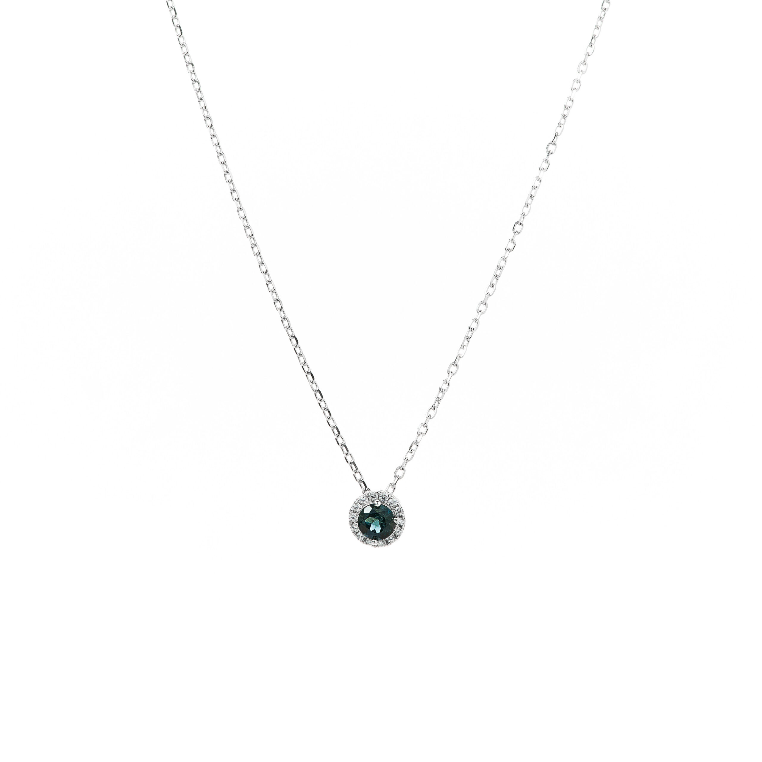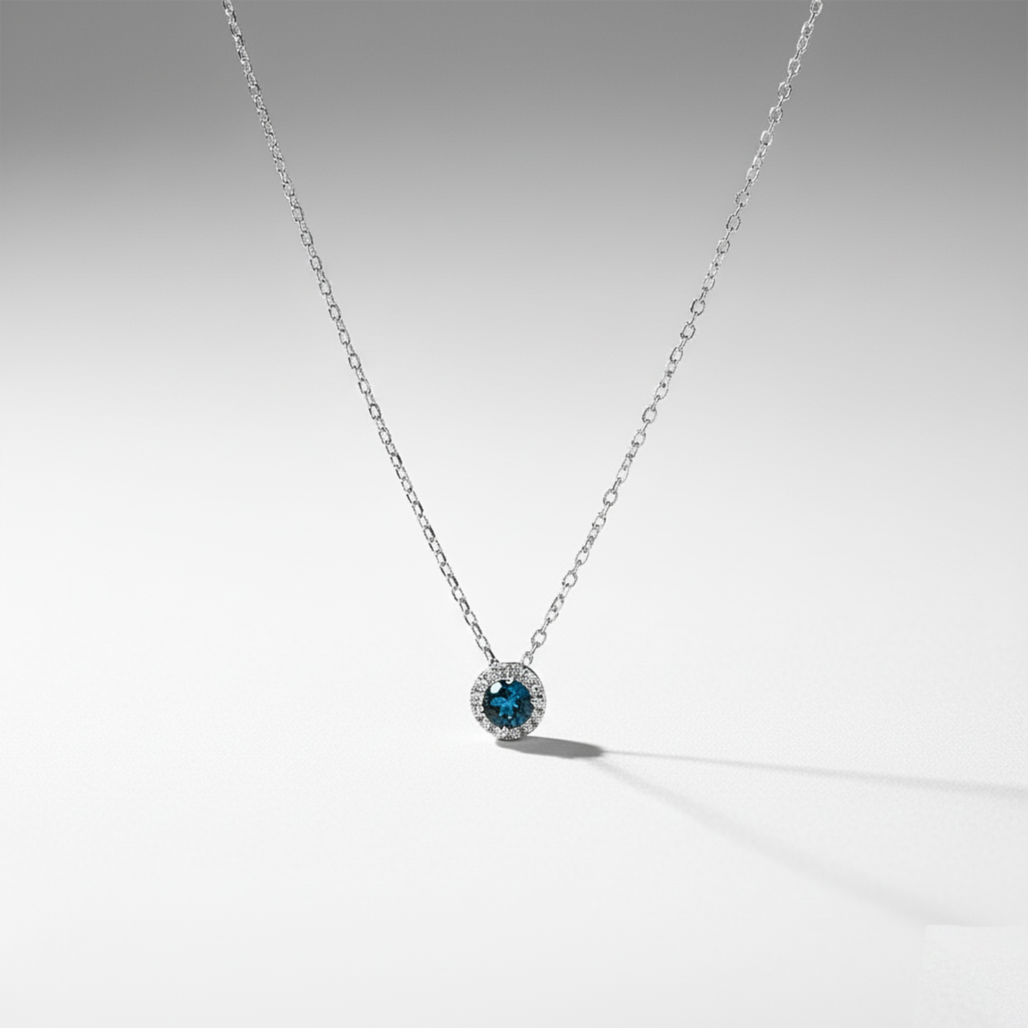 Collar con blue topaz natural con un halo de circones engastada en cadena de eslabones de plata esterlina. 7mm cadena de 45cm