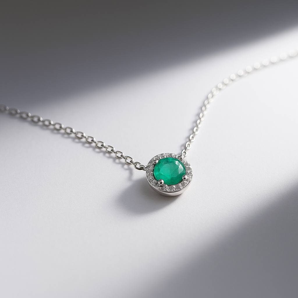 Collar esmeralda natural corte redondo