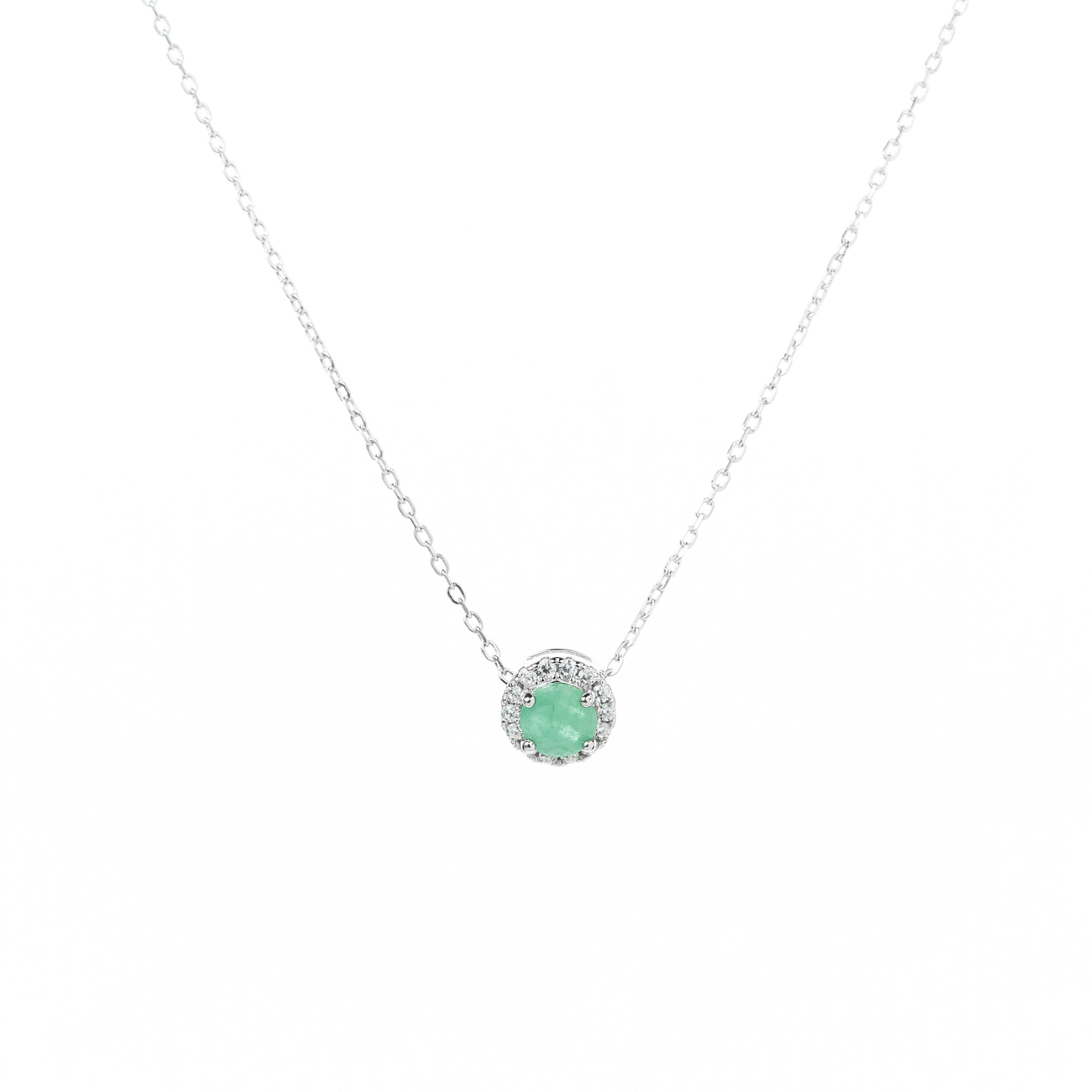 Collar con esmeralda natural con un halo de circones engastada en cadena de eslabones de plata esterlina 925. Medidas: 7mm cadena de 45cm