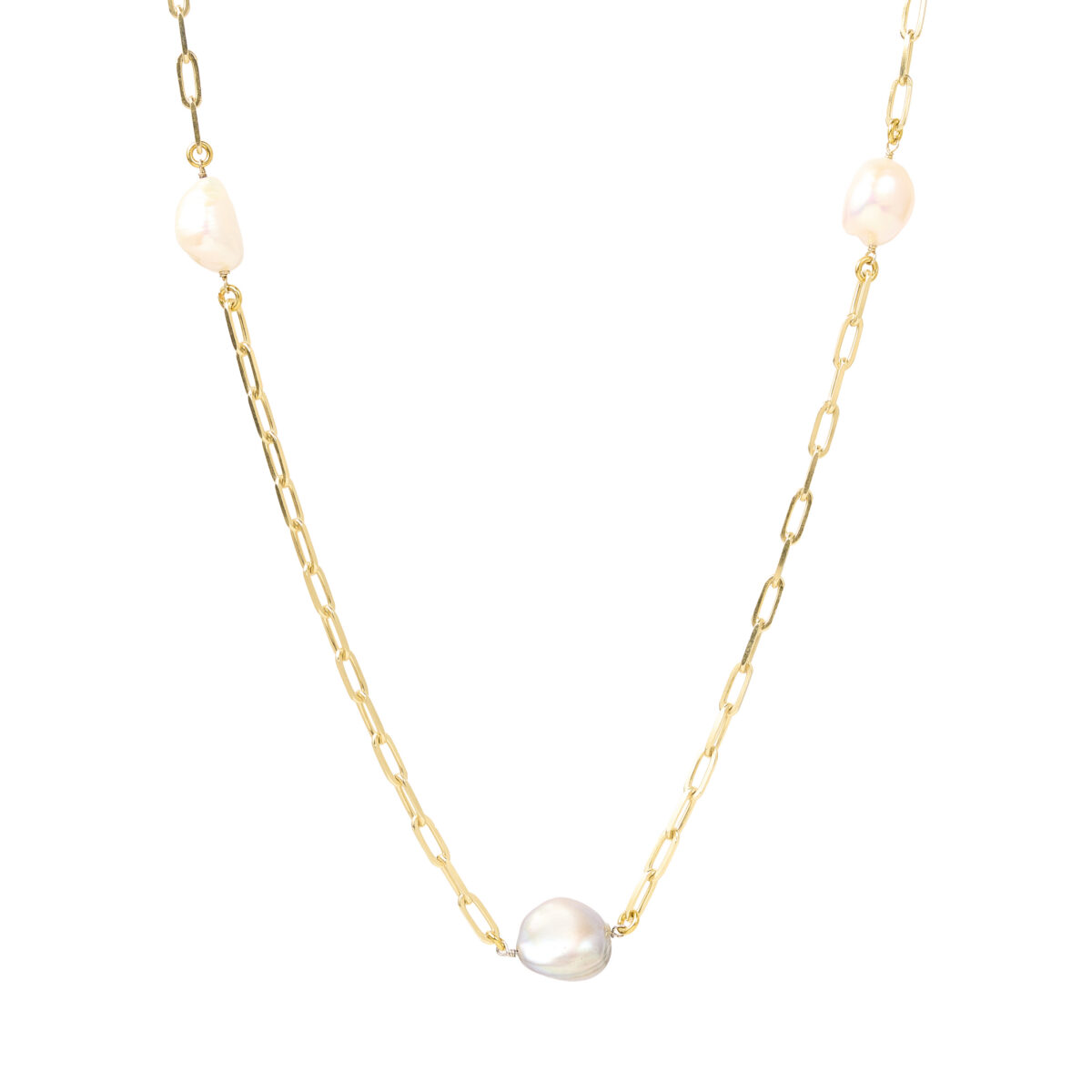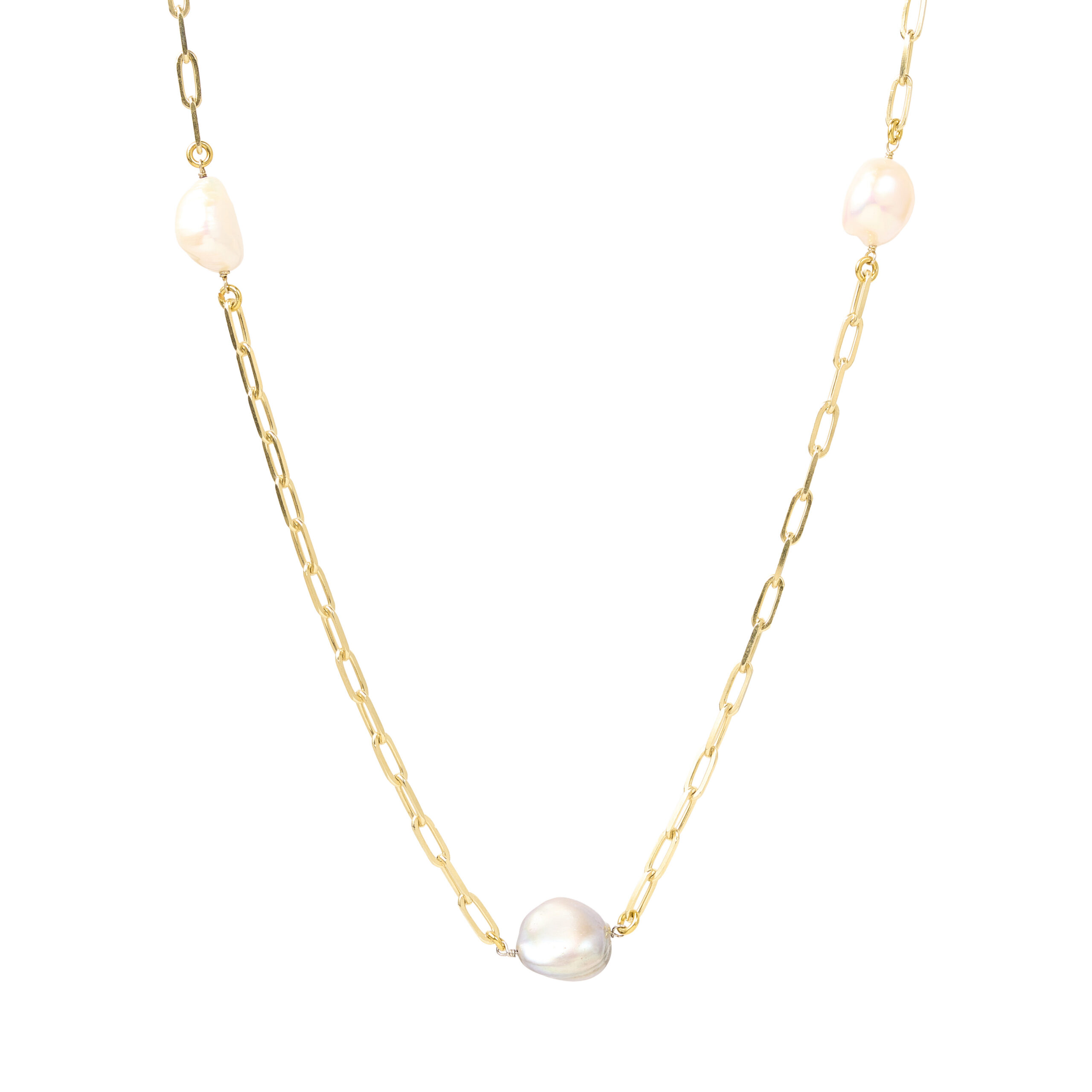 COLLAR ESLABONES Y PERLAS BARROCAS 70CM