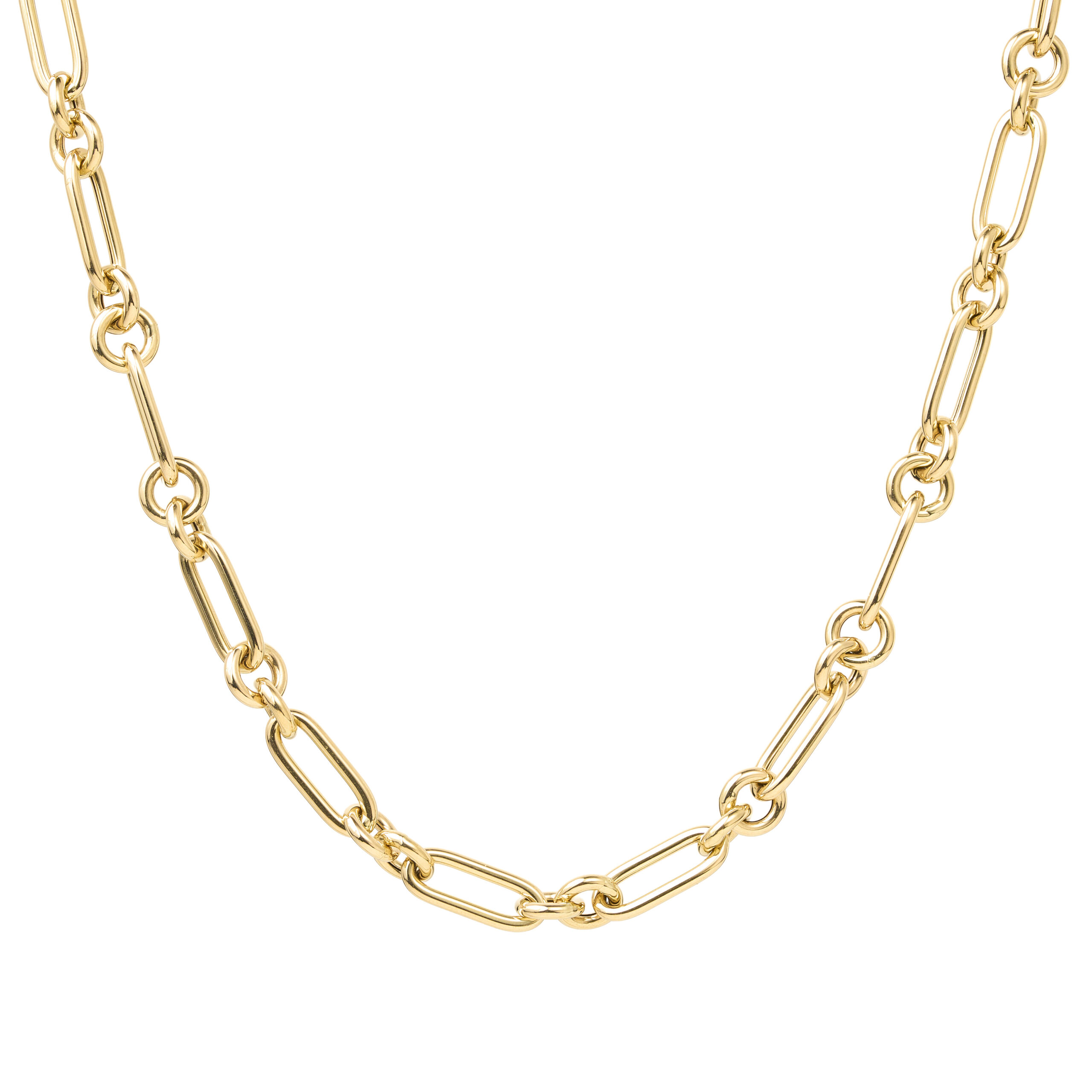 Collar de oro amarillo 18k con diseño de eslabones redondos y alargados con un largo de 40cm, cierre de mosquetón. peso: 11,8 gramos.