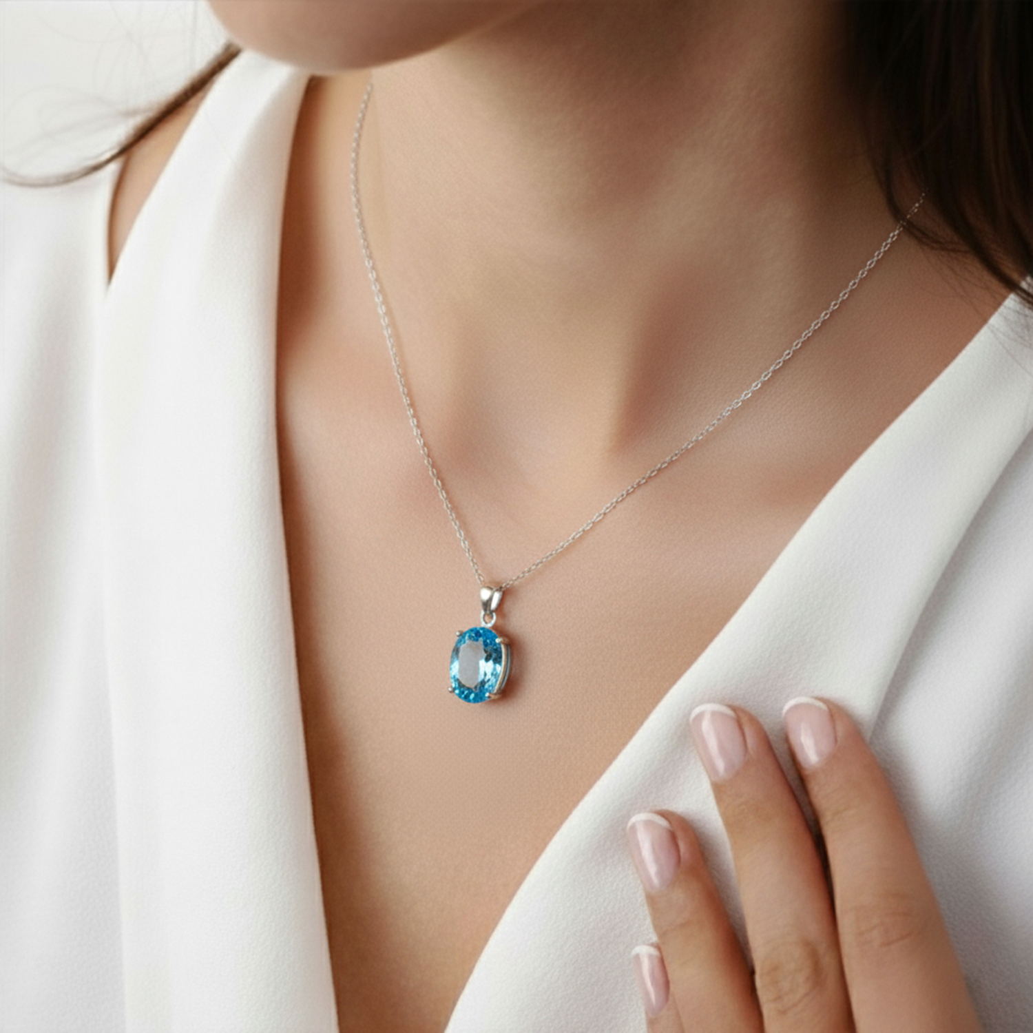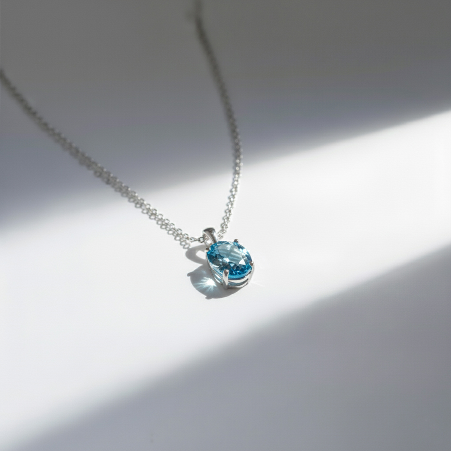 Collar de topacio azul natural ovalado engastado en grifa con cadena de eslabones de plata esterlina 925. Colgante 2,4cm x 1,x2cm cadena 45cm