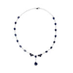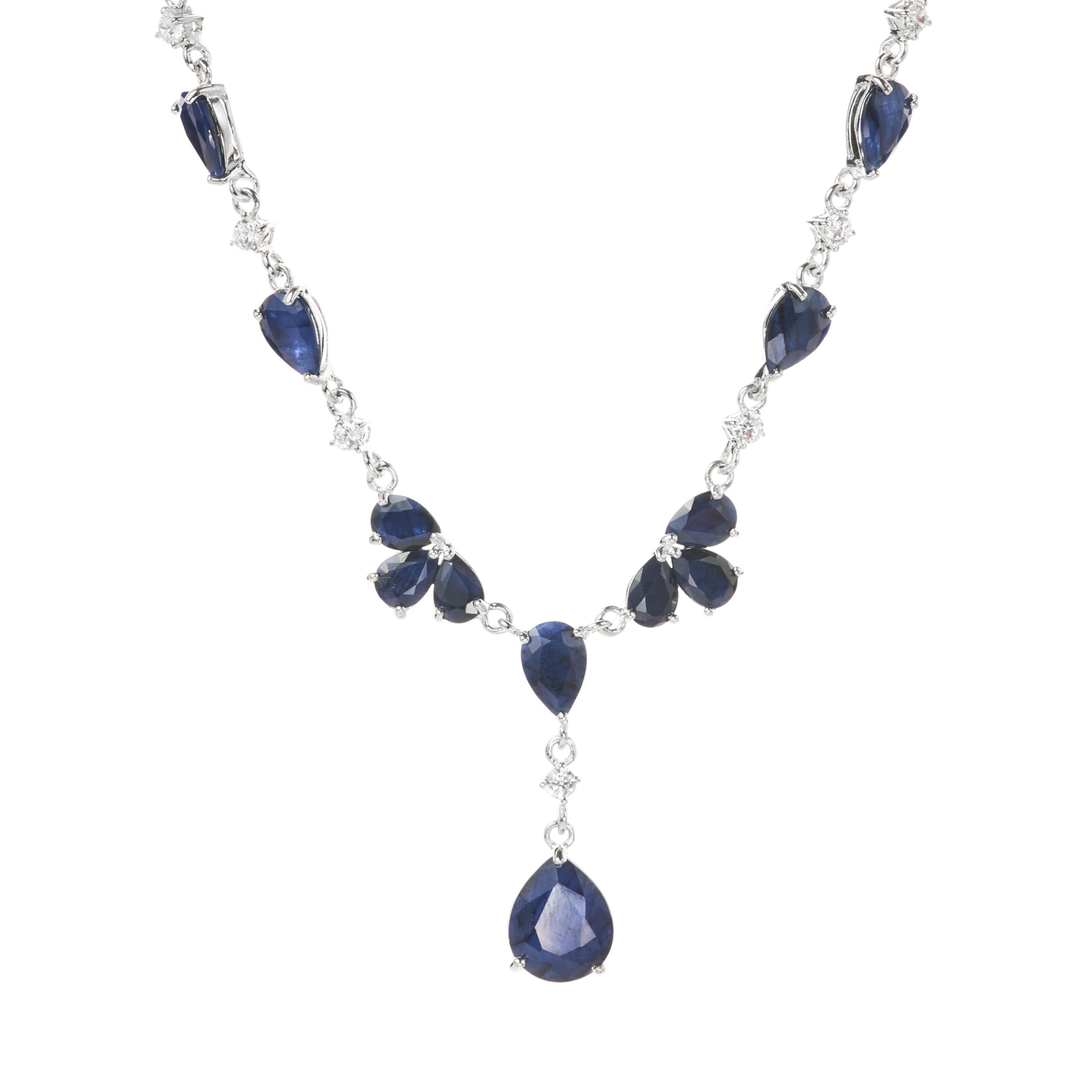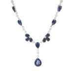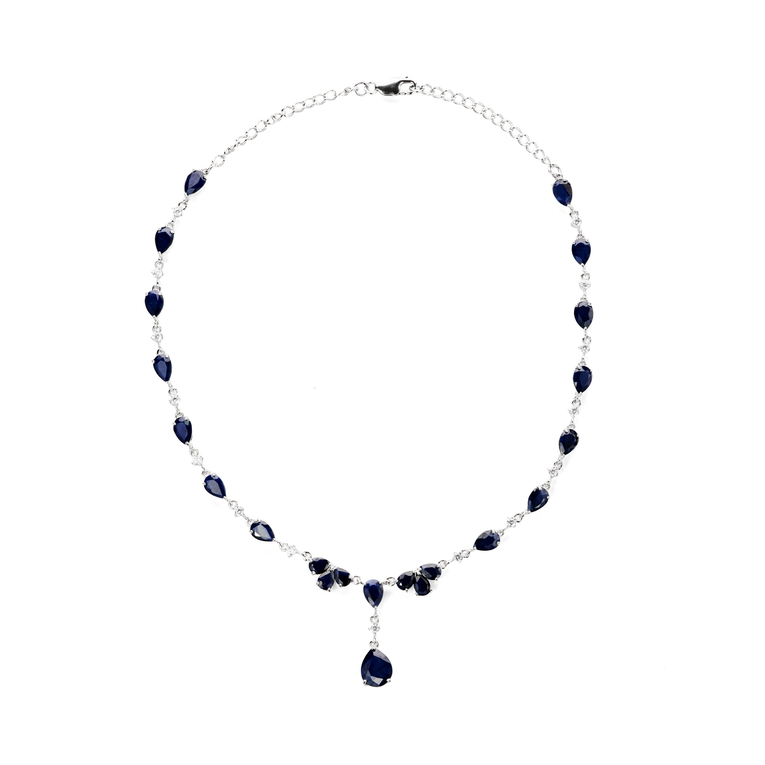 Collar de zafiros naturales en forma de gotas engastados en grifa con circonita cubica blanca. En plata esterlina 925. Largo 47 centimetros.