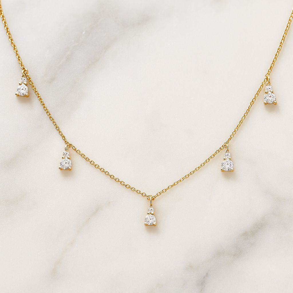 COLLAR DIAMANTES ORO AMARILLO GOTITAS