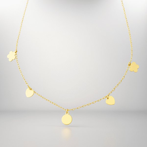 Collar Oro Amarillo 18K Corazón, Flor Y Disco – 45Cm