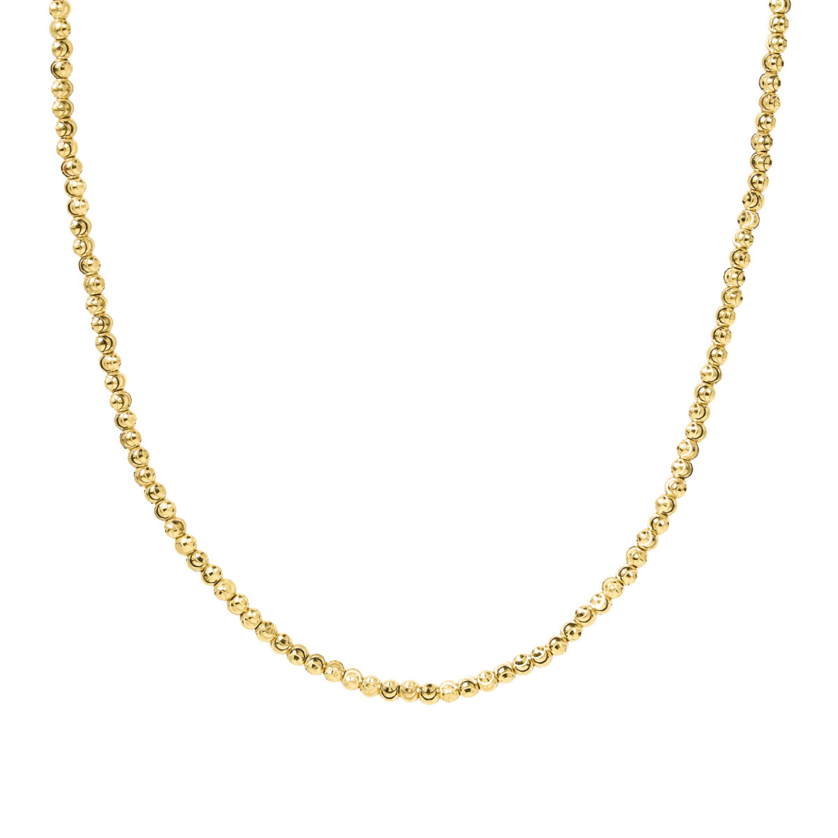 Collar de Oro amarillo 18k con diseño de cuentas de oro con cortes diamantados con un largo de 40 centimetros.