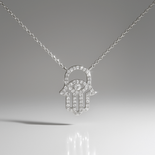 Collar Oro Blanco 18K Colgante Mano Hamsa 0.16Ct