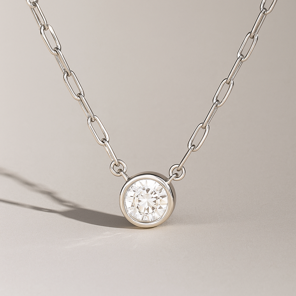 Collar Punto De Luz Bisel Plata