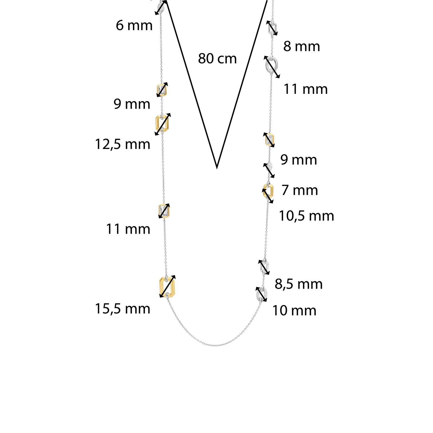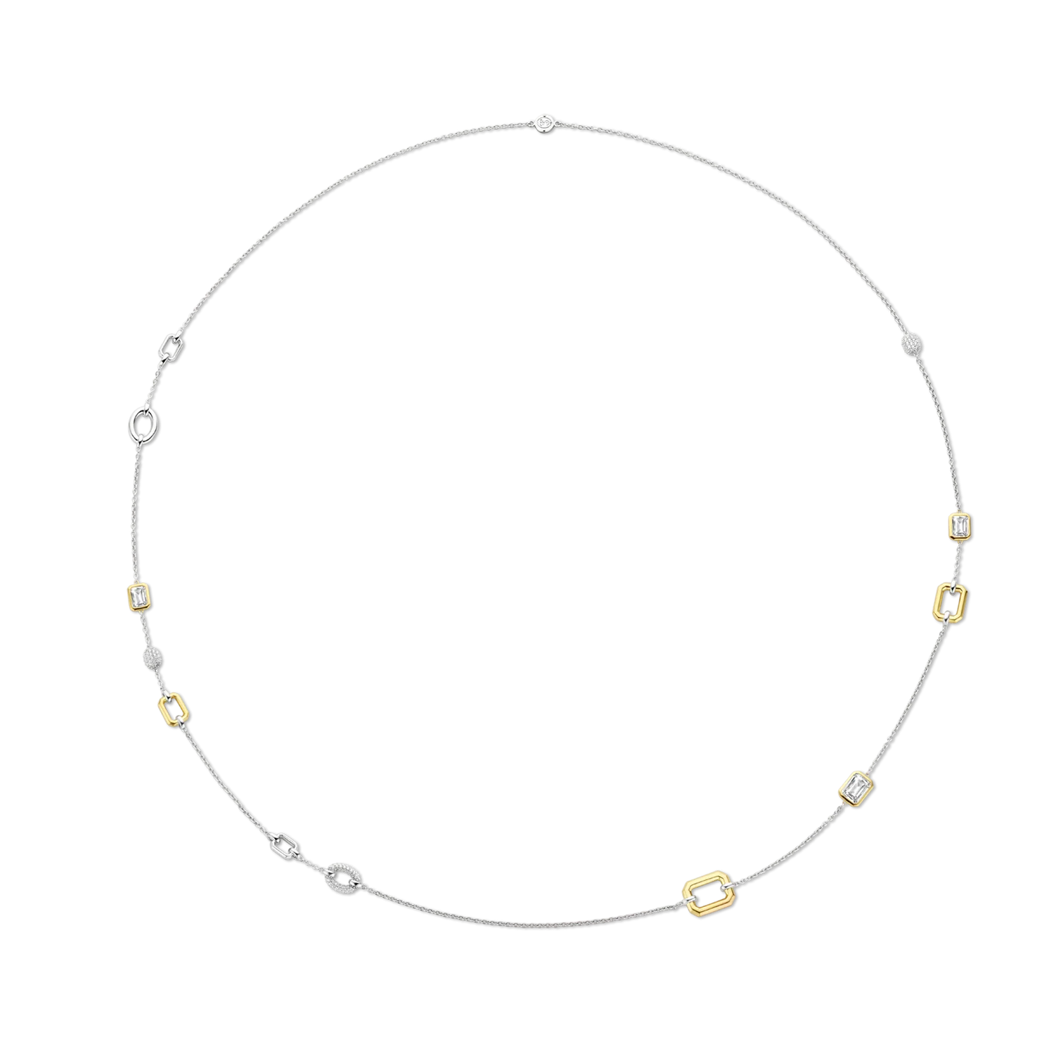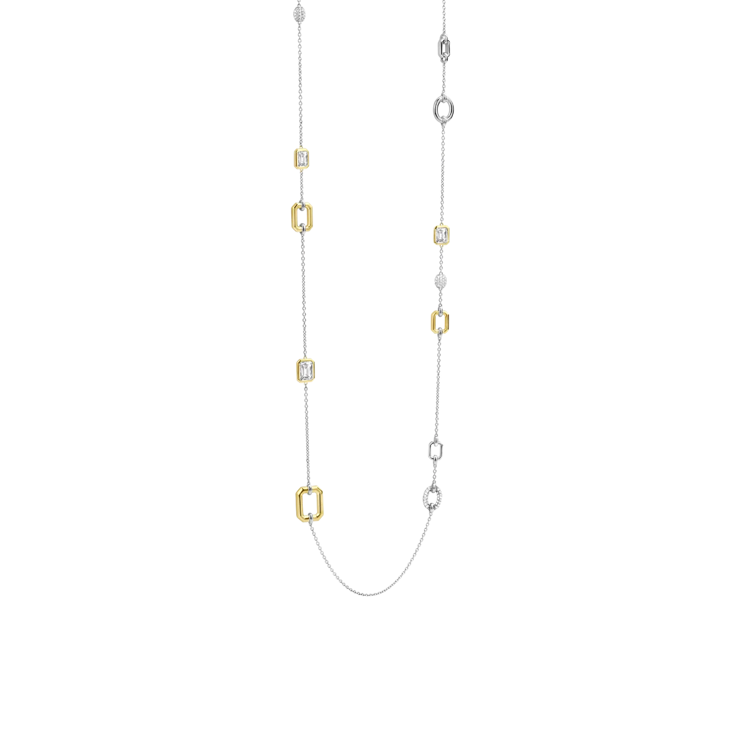 Collar TI SENTO modelo 34028ZY de plata esterlina largo 80cm con distintos colgantes en formas abstractas con circonita cubica blanca y recubrimiento de oro