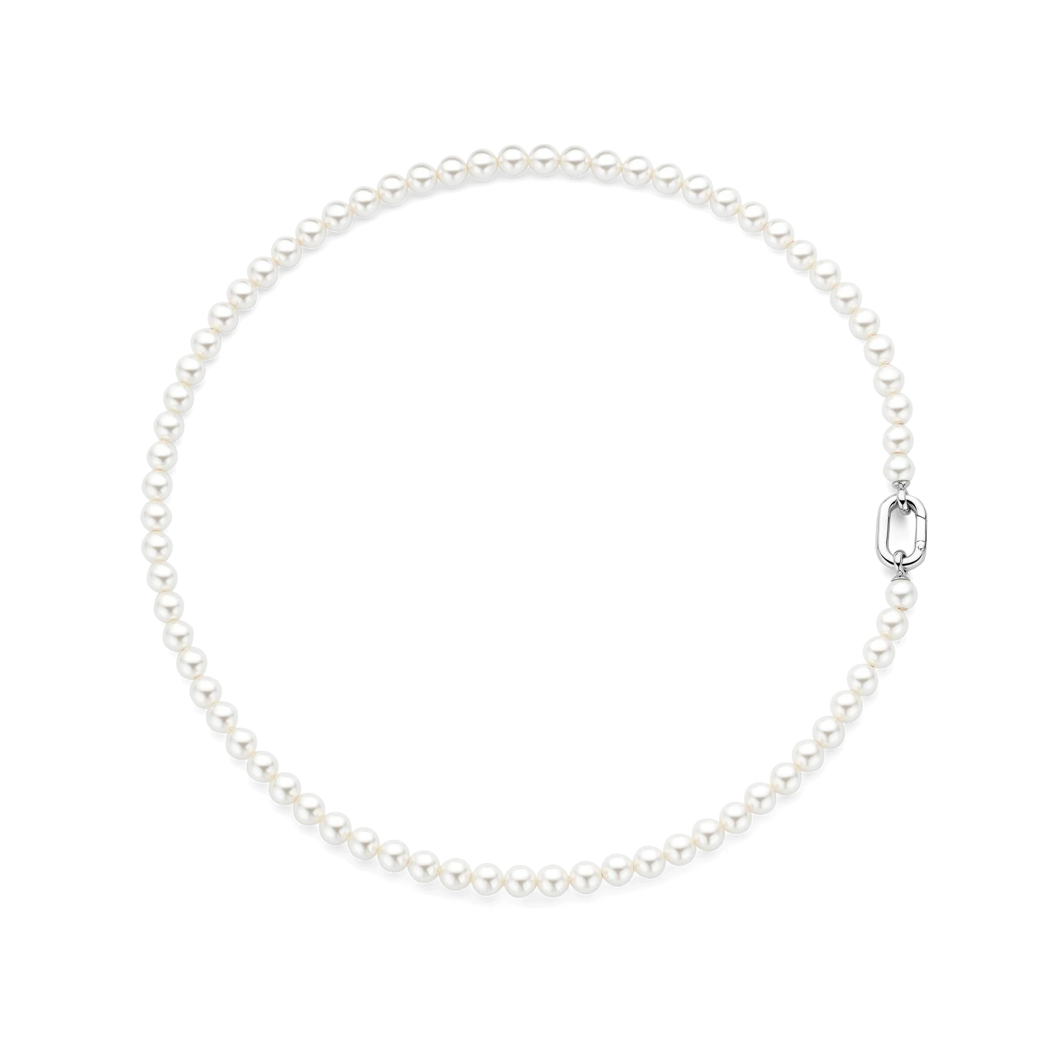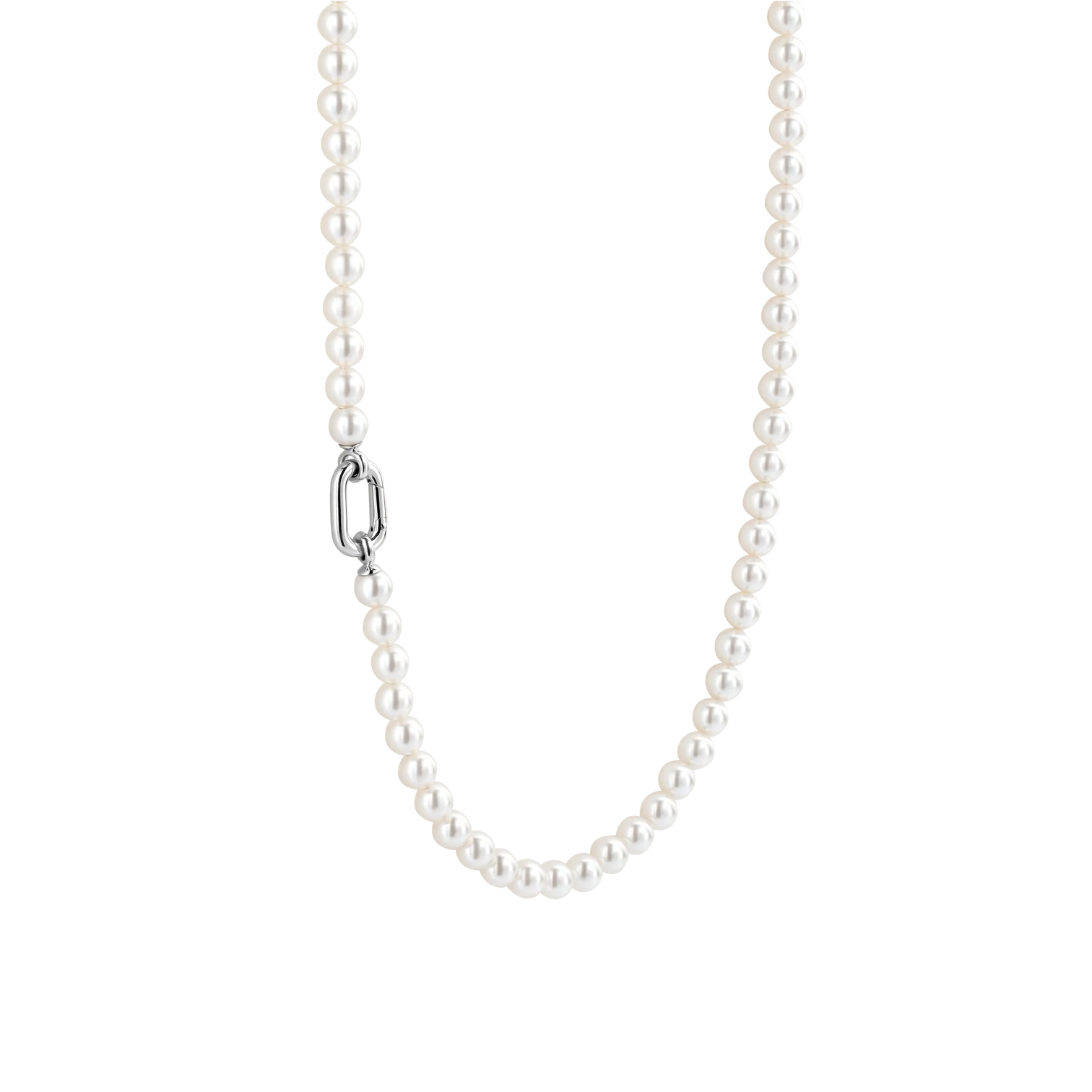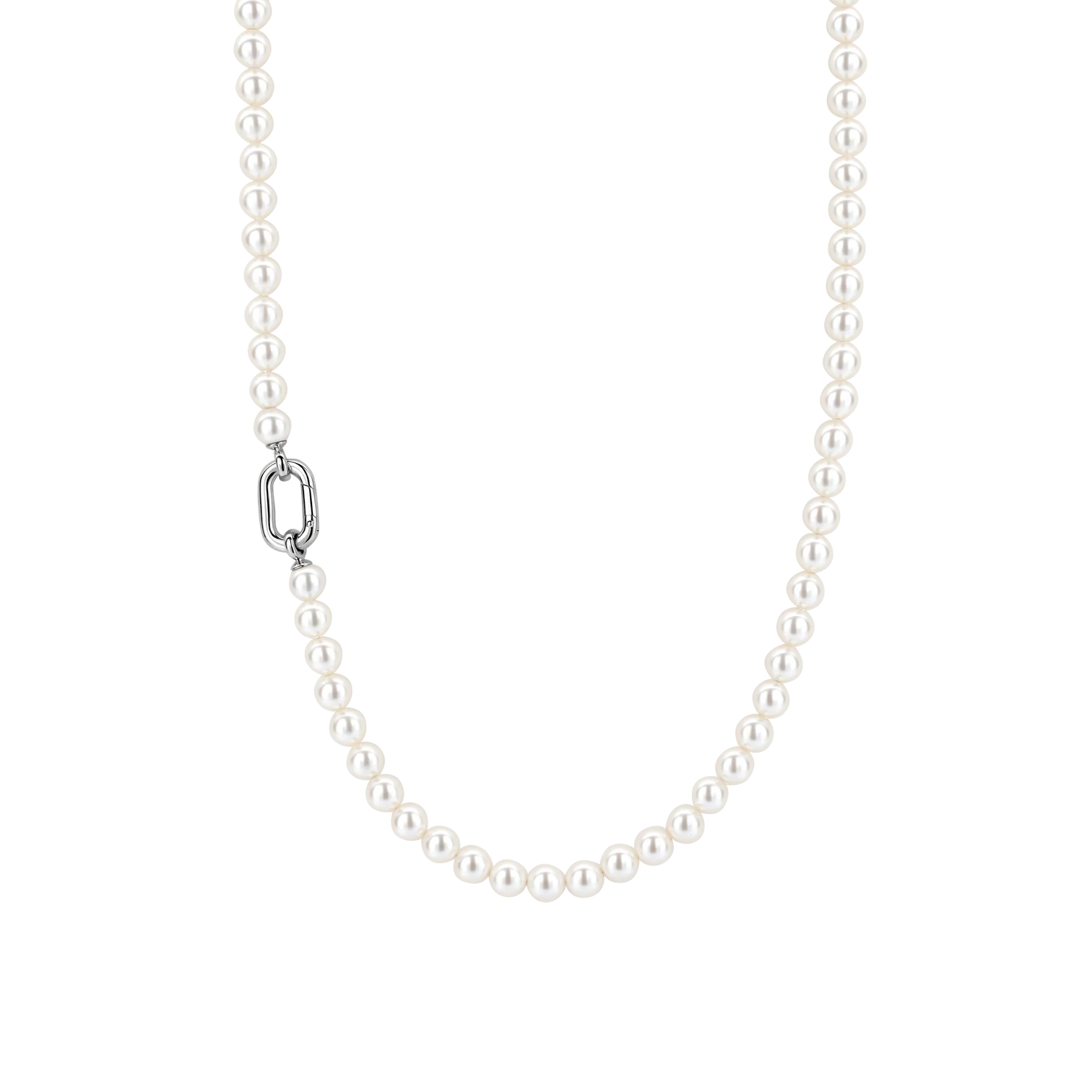 Collar TI SENTO modelo 34050pw de perlas blancas con núcleo de plata de diametro 6 milimetros con broche de plata esterlina con recubrimiento de platino largo 45cm
