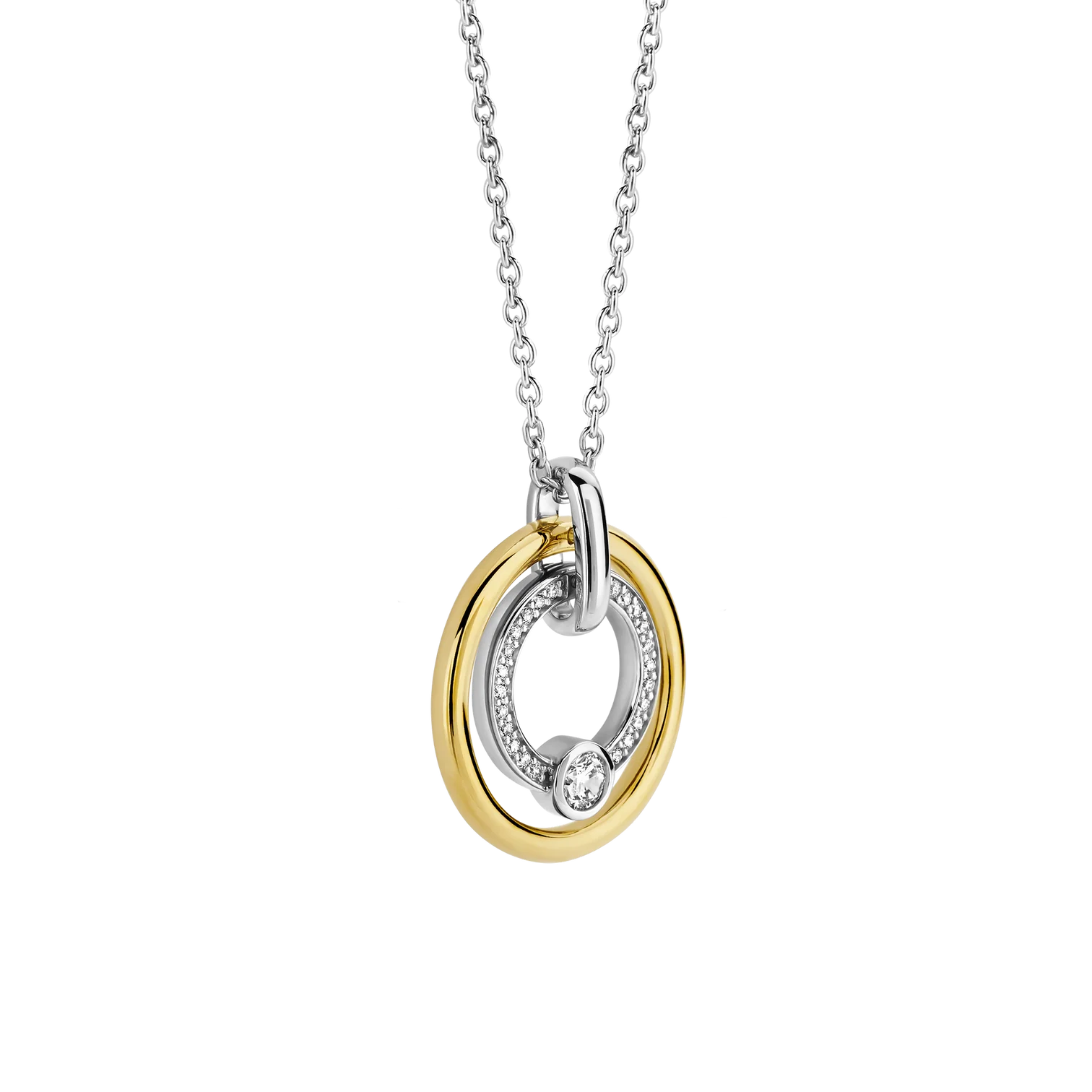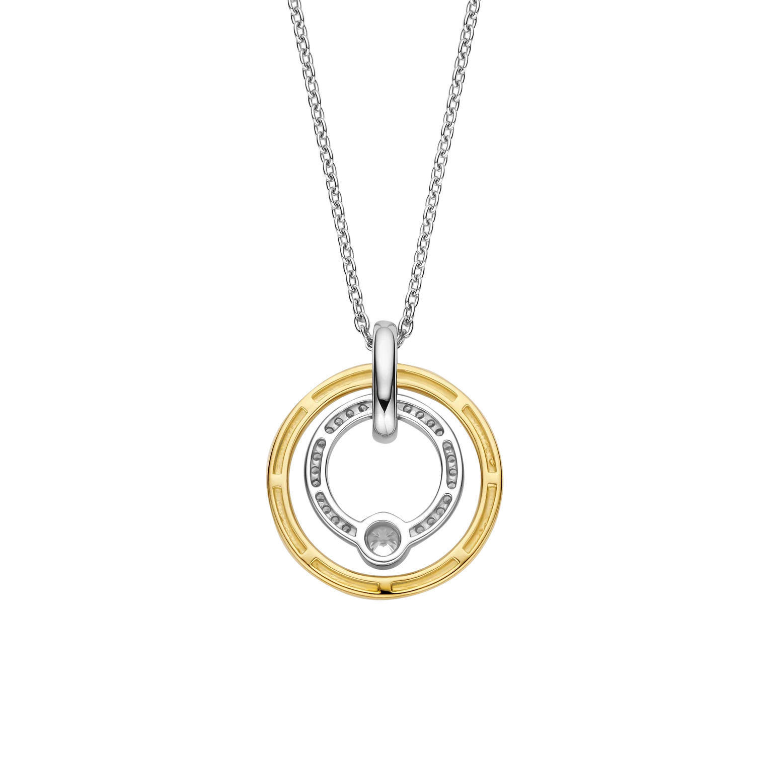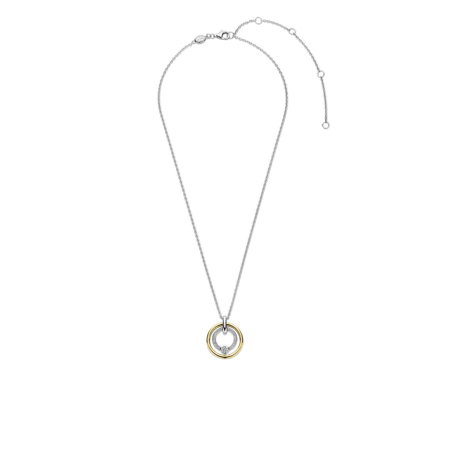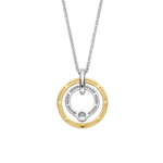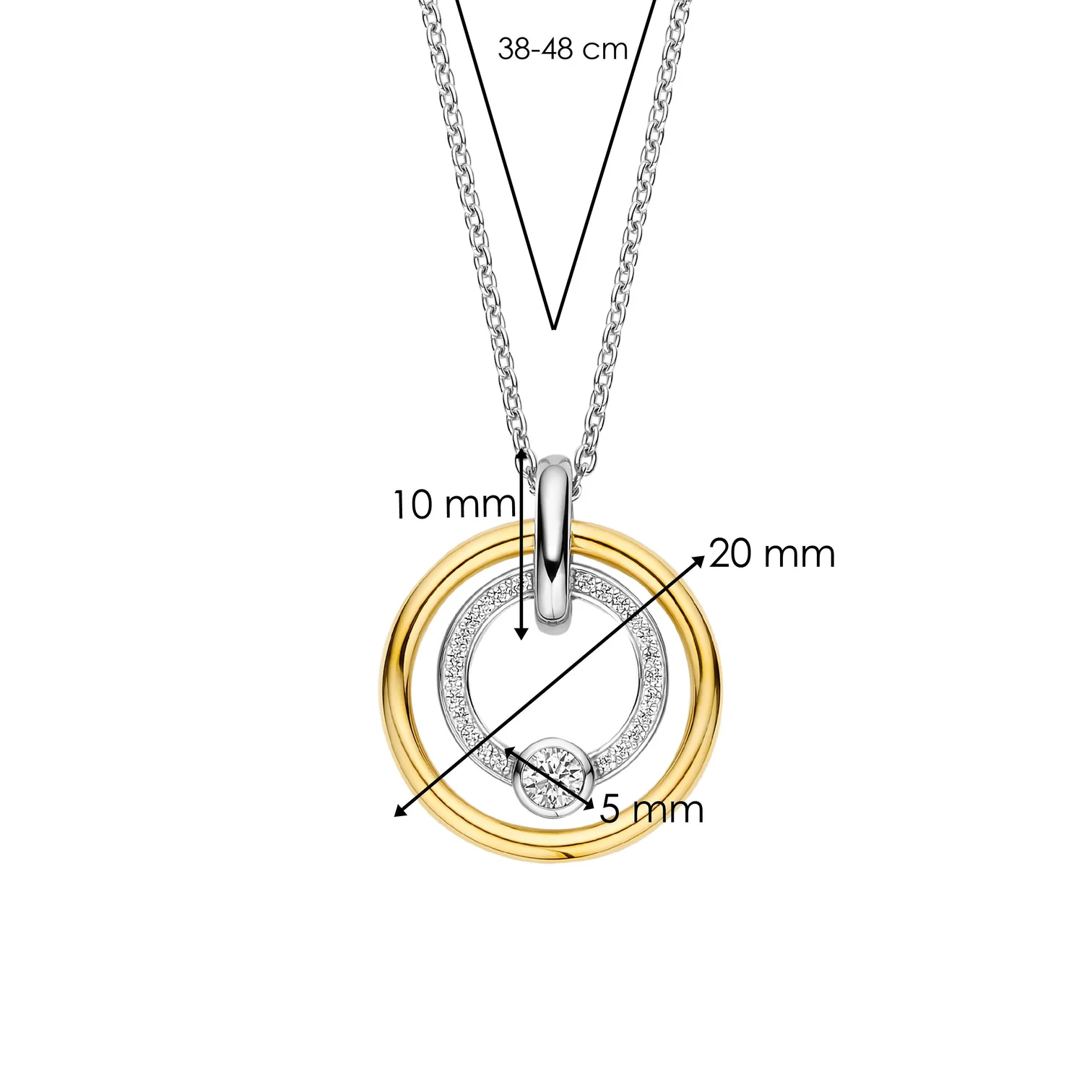 Collar TI SENTO modelo 34056ZY de plata esterlina con recubrimiento en oro amarillo 18 colgante redondo con circonita cubica blanca. Largo 42cm