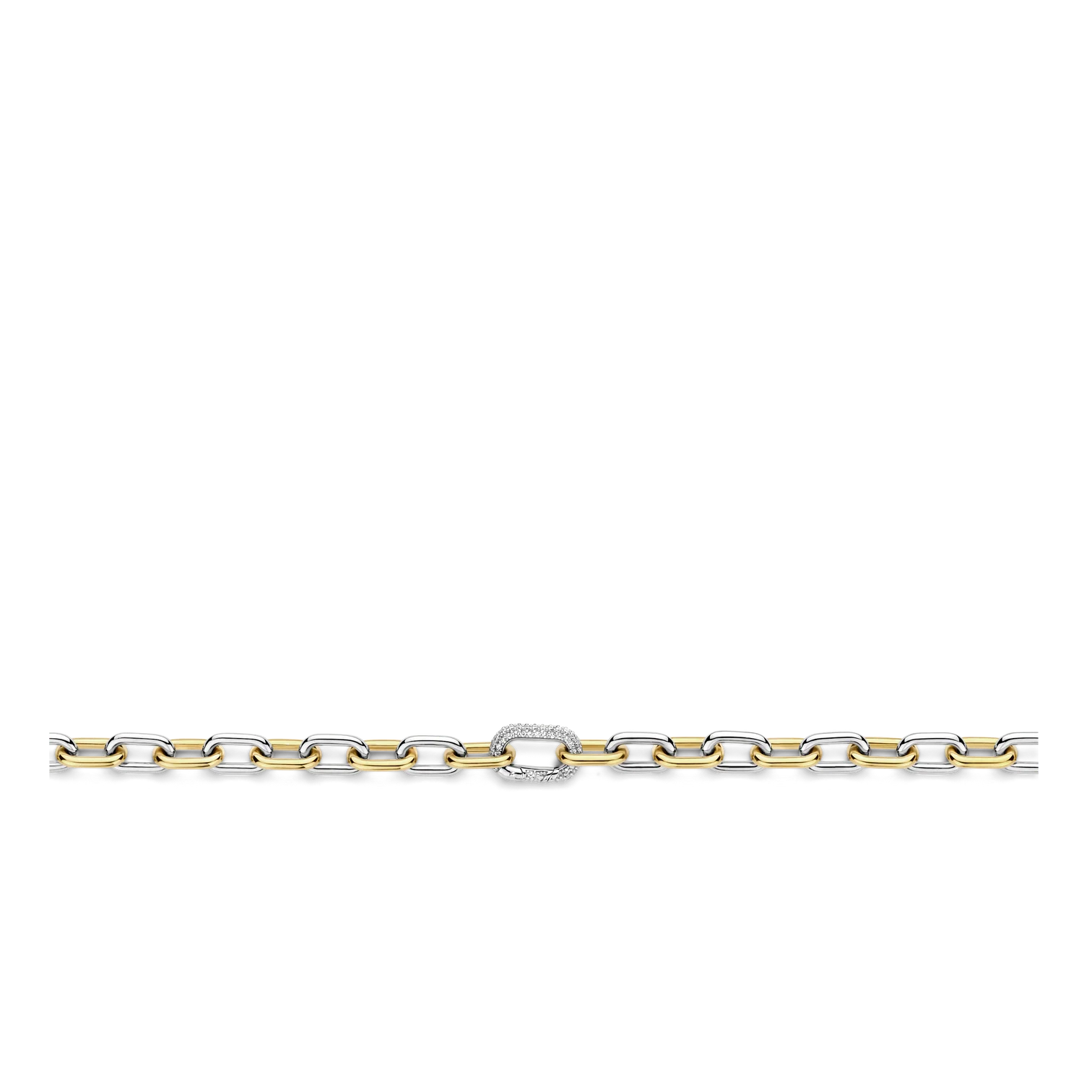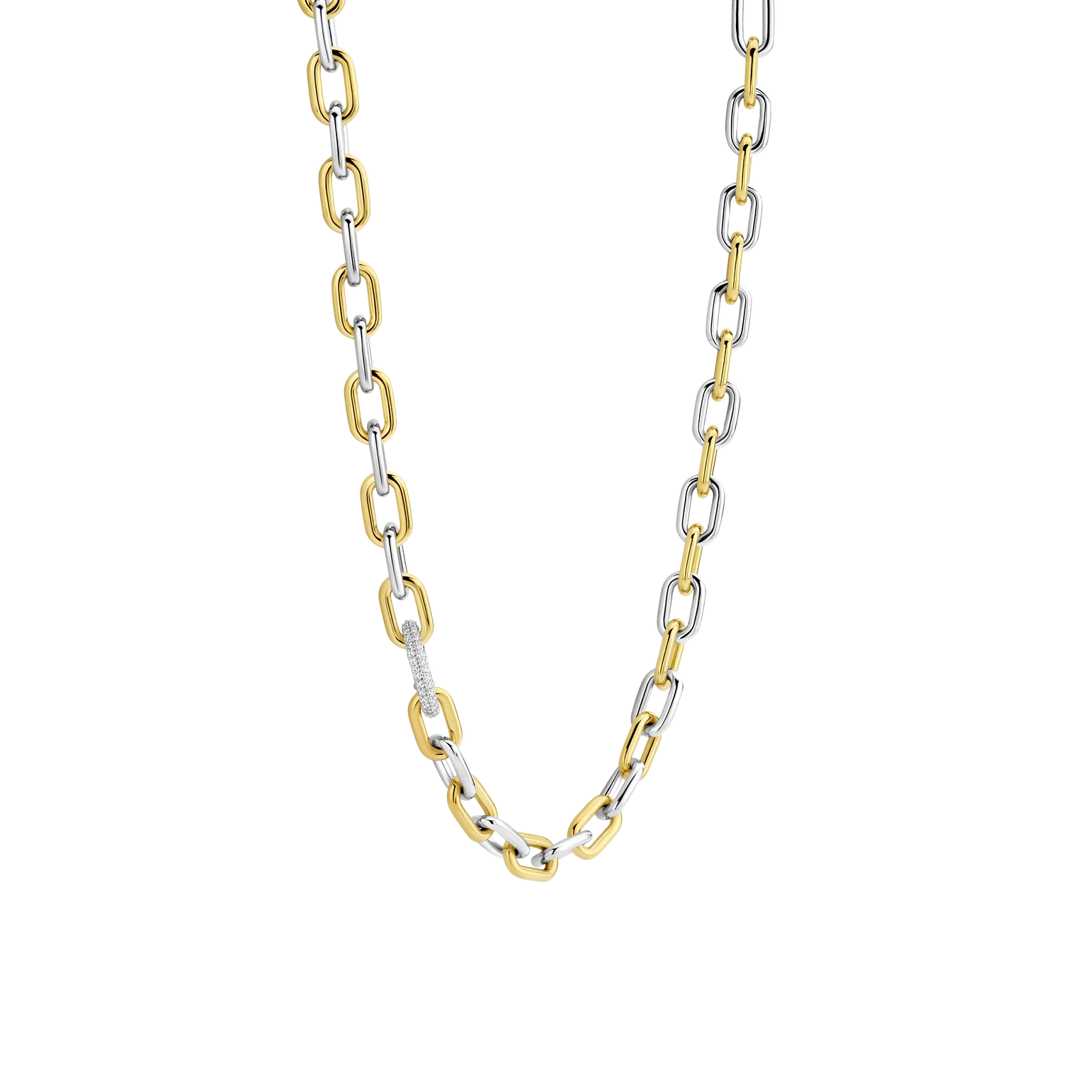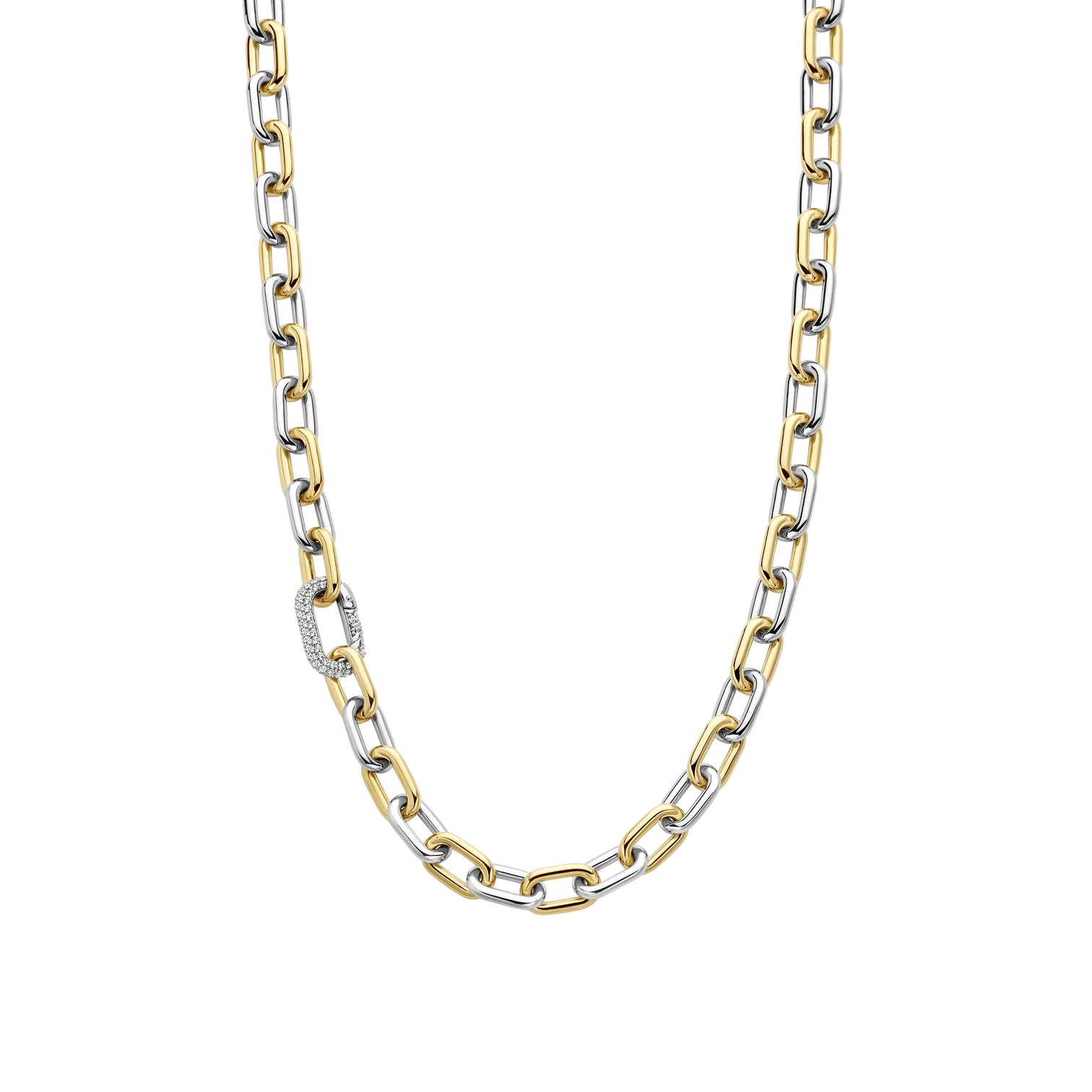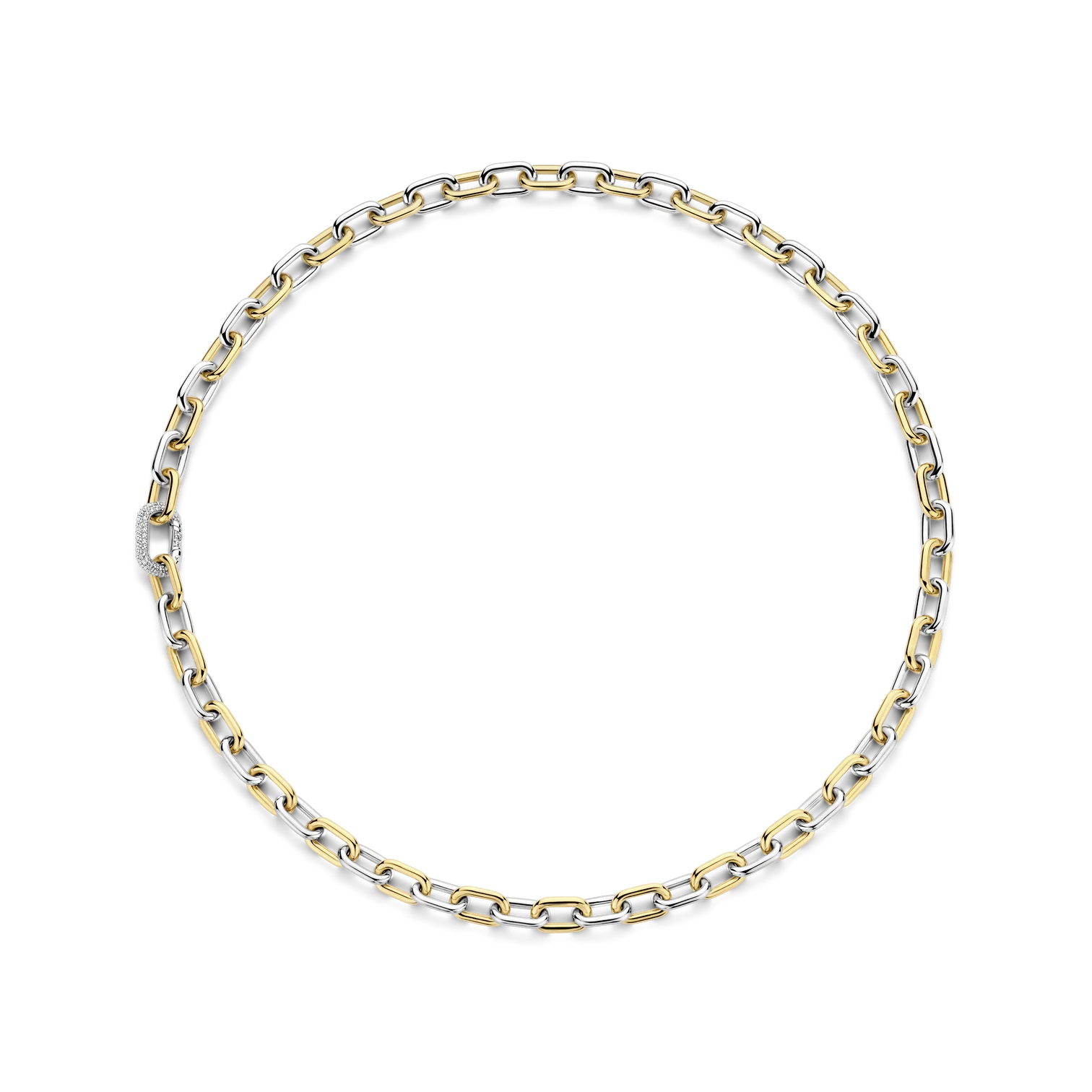 Collar TI SENTO modelo 34065zy de plata esterlina con recubrimiento de platino y oro 18k con diseño de eslabones grandes con circonita cubica blanca en pave. Largo 48cm