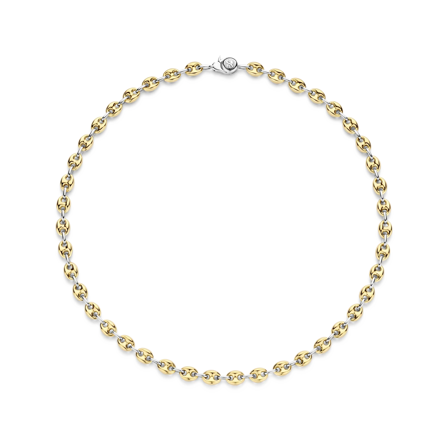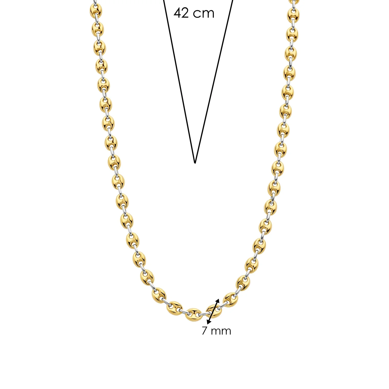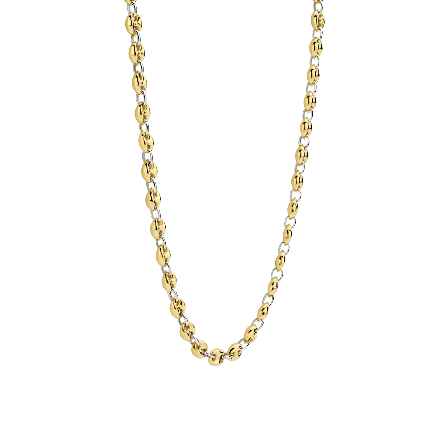 Collar TI SENTO modelo 34067sy de plata esterlina con eslabones en forma de granos de cafe con recubrimiento en oro amarillo 18k Largo 42cm
