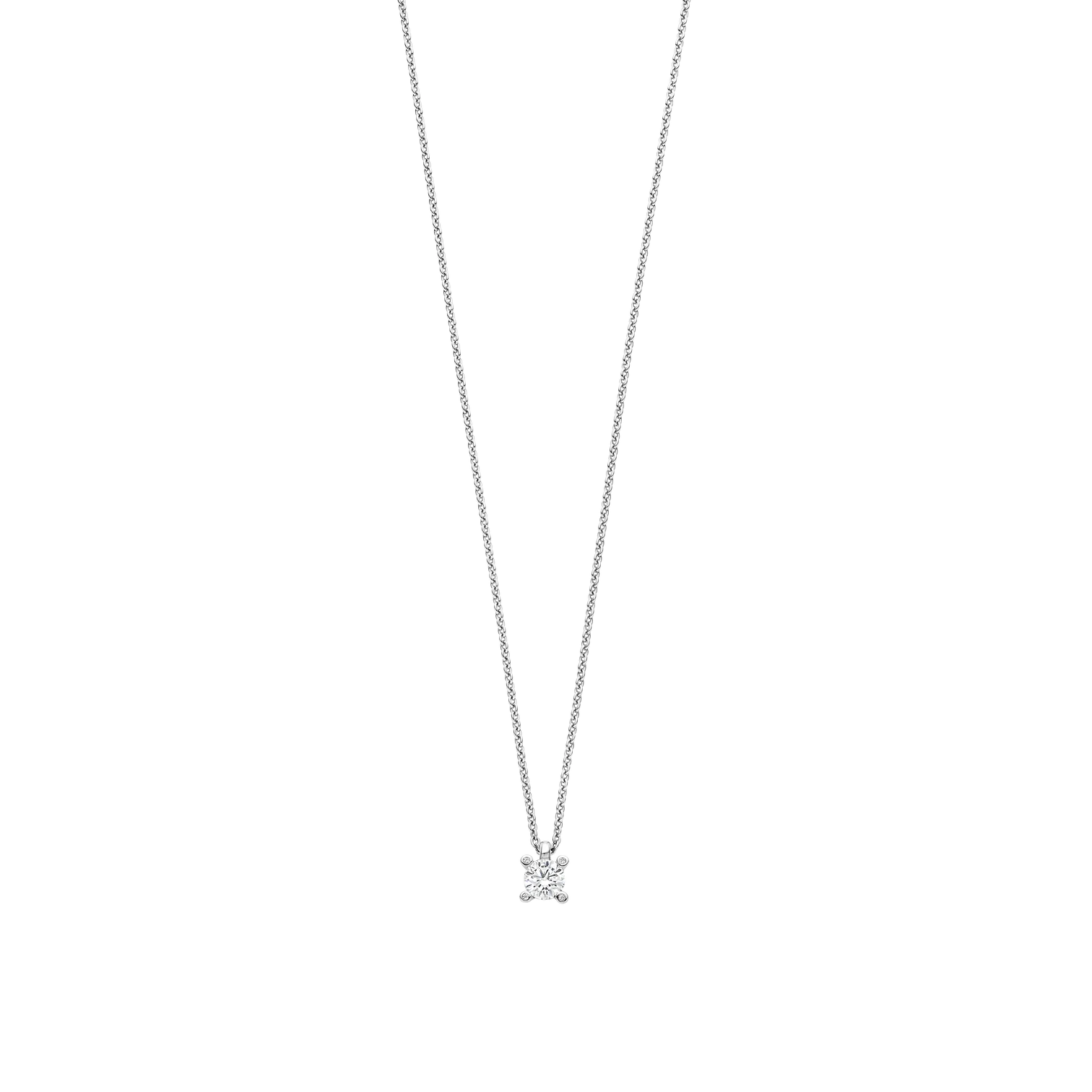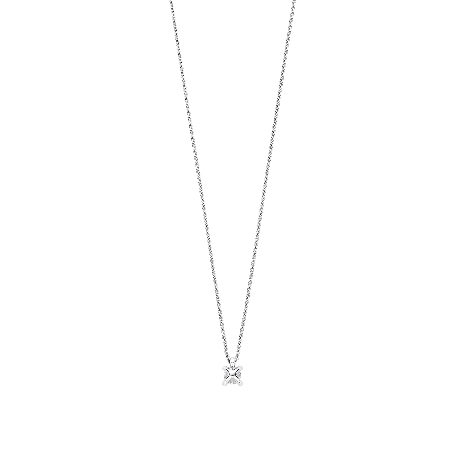 Collar TI SENTO modelo 34087ZI en plata esterlina con recubrimiento en Platino con colgante de circonita cubica blanca engastada en grifa. Largo 42cm