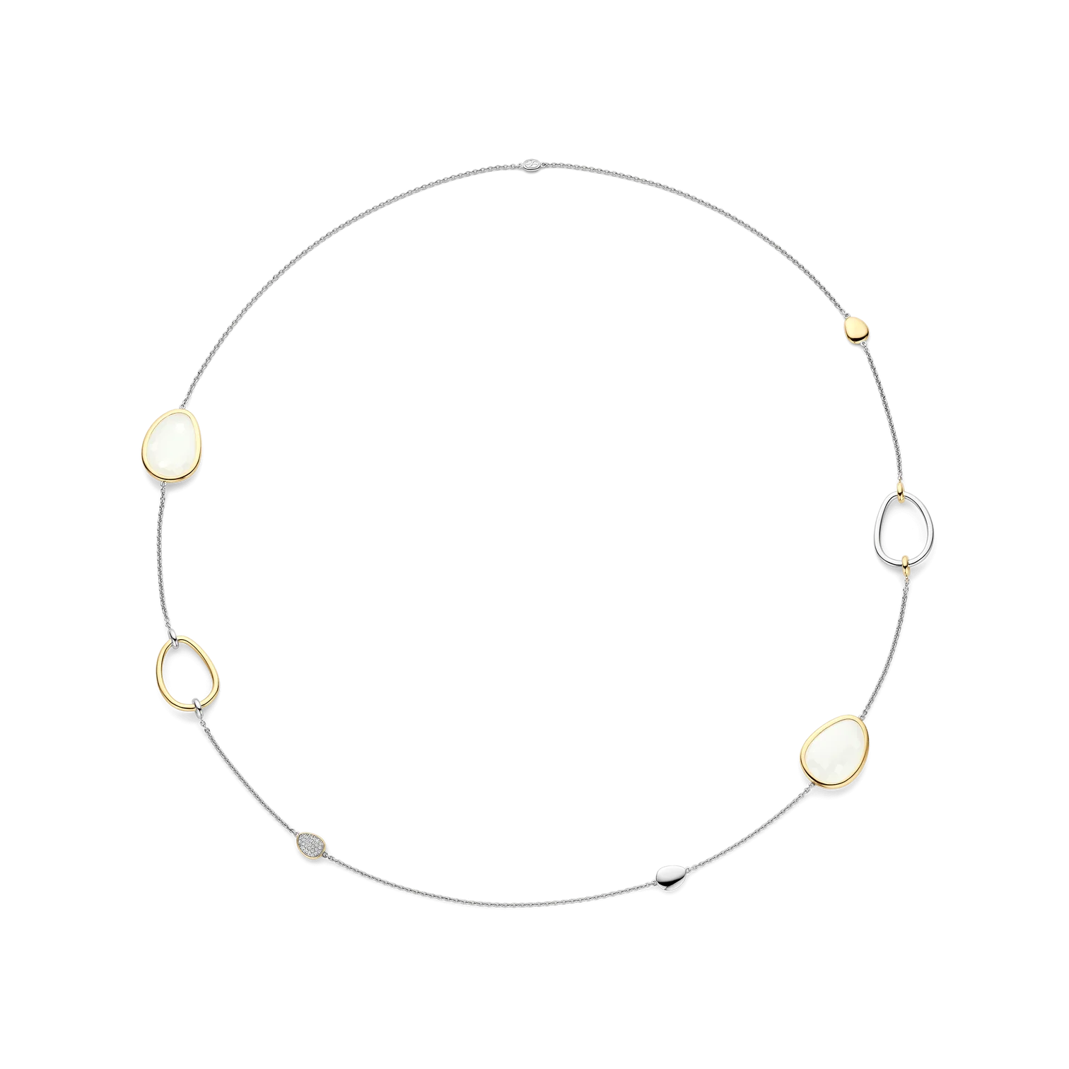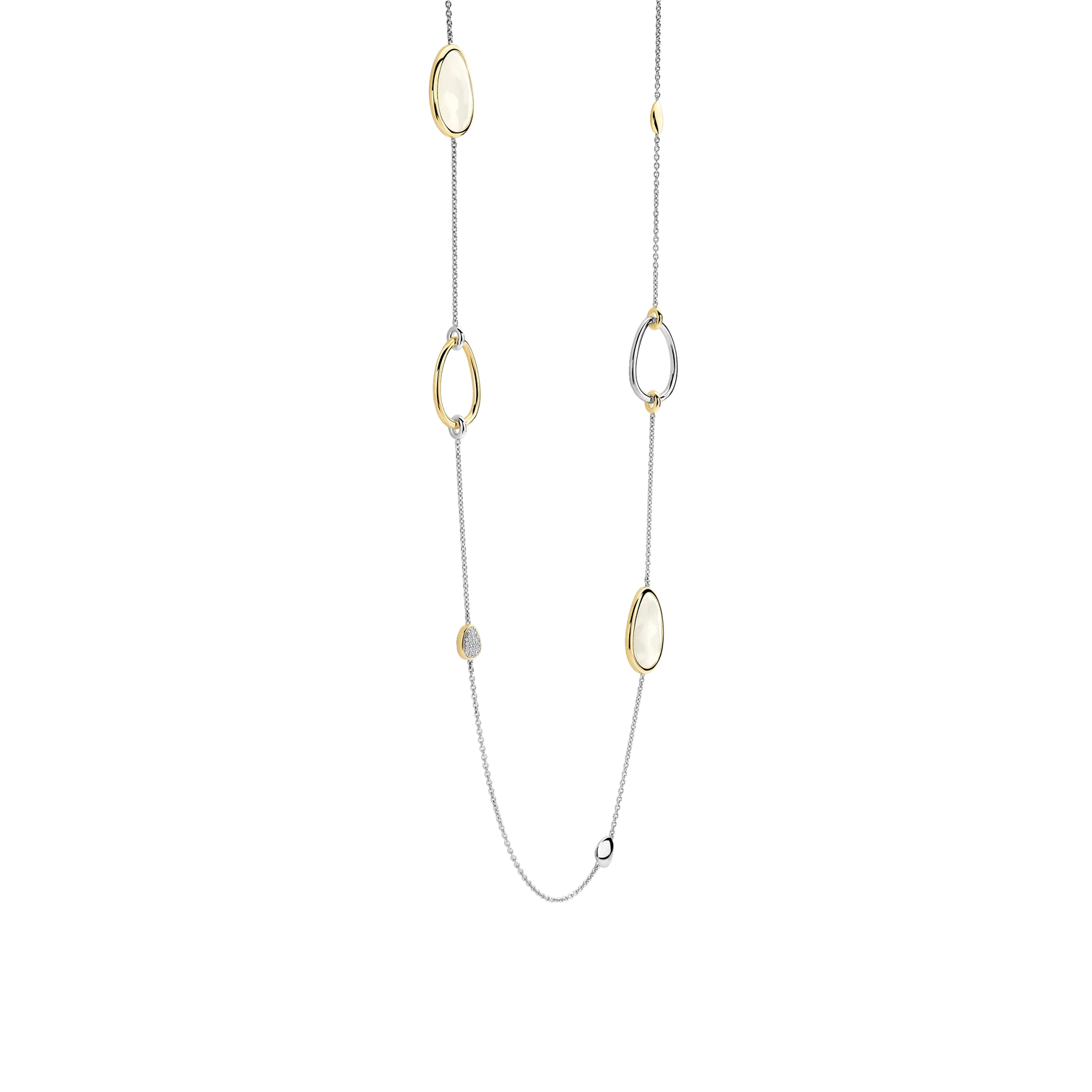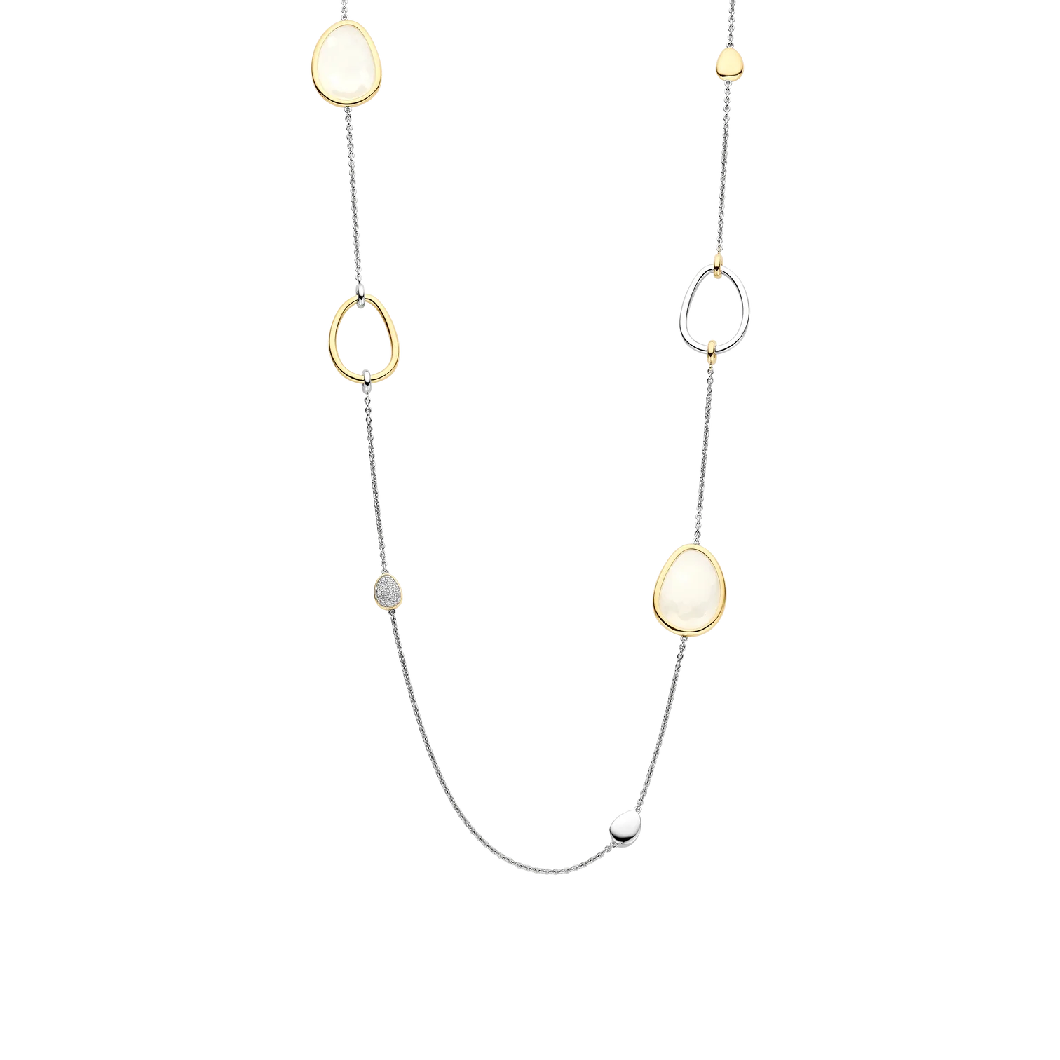 Collar TI SENTO modelo 34102mw de plata esterlina con recubrimiento en platino y piedras lechosas y recubrimiento en oro amarillo 18k , Largo 80cm