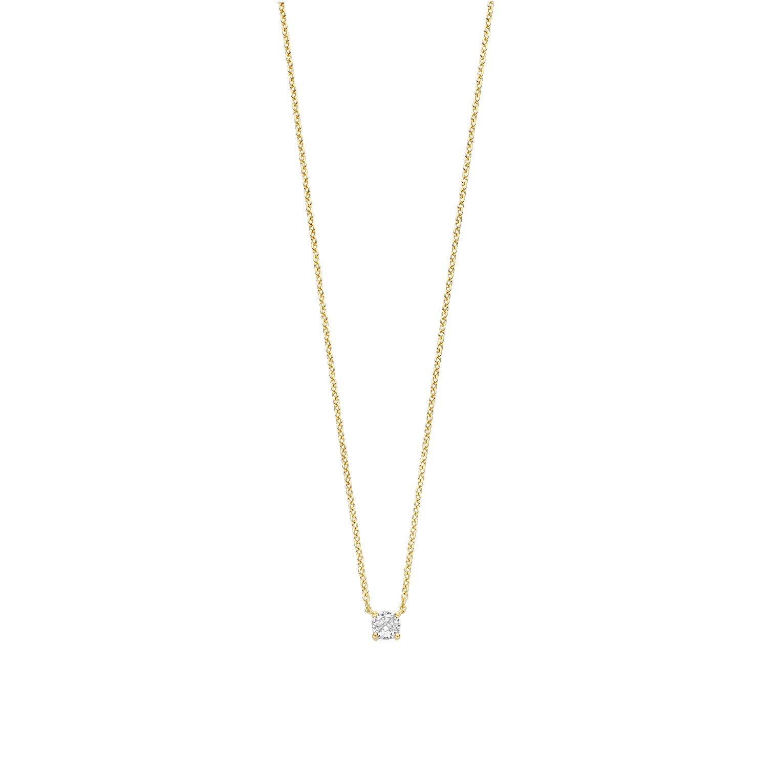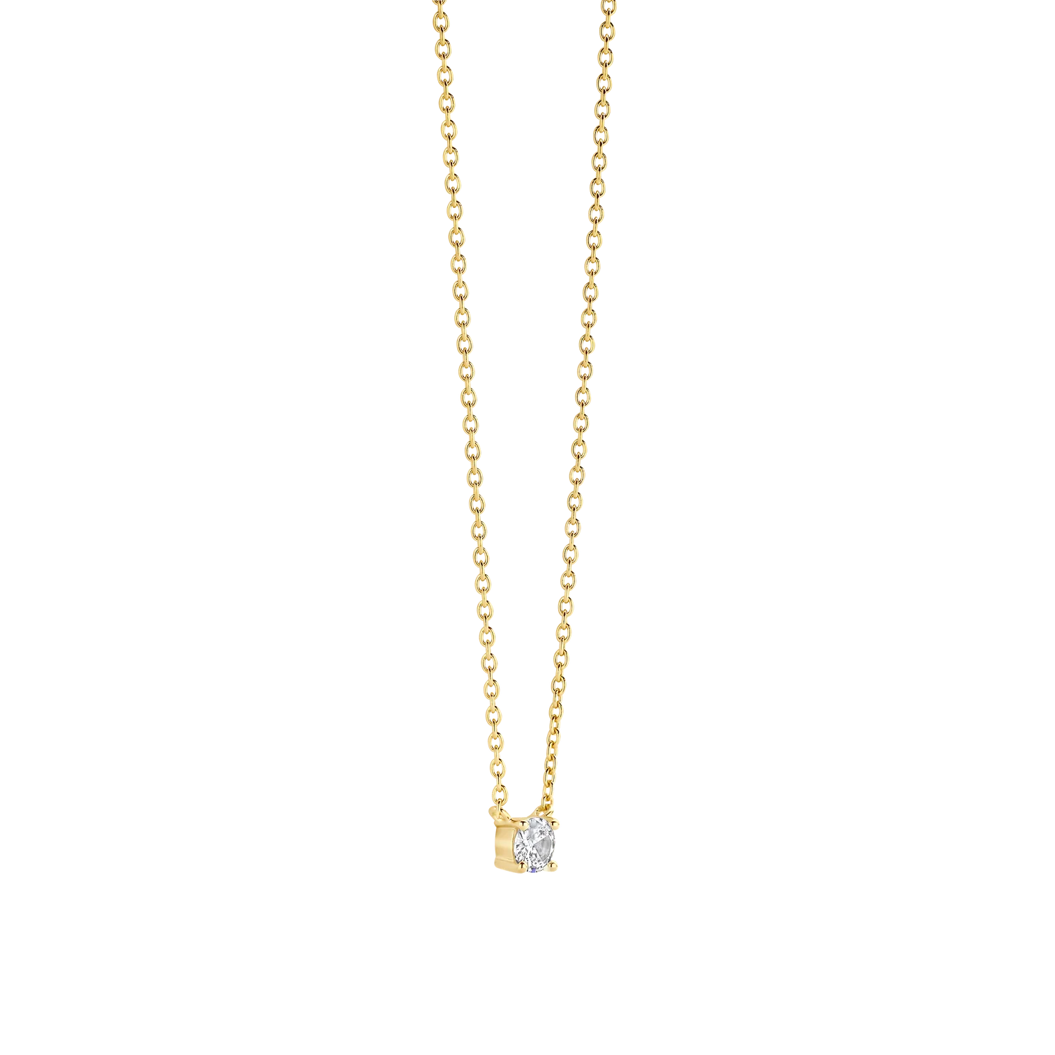 Collar TI SENTO modelo 3894SY de plata esterlina con recubrimiento en oro amarillo 18k con una circonita cubica blanca engastada en grifa. Largo 42cm