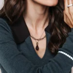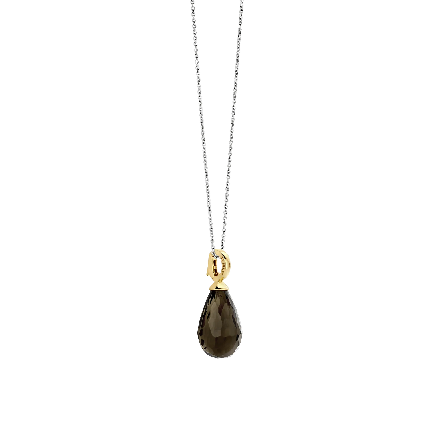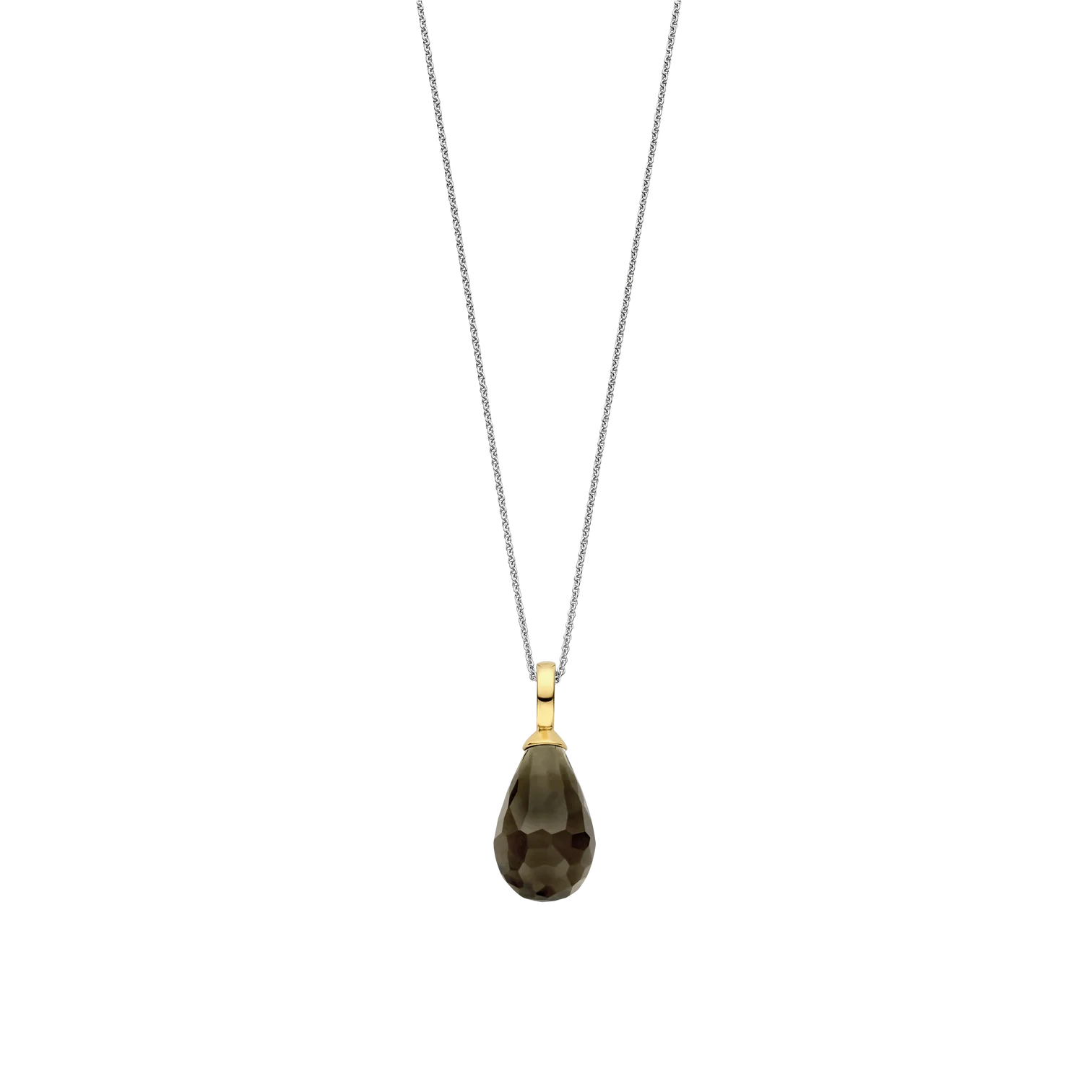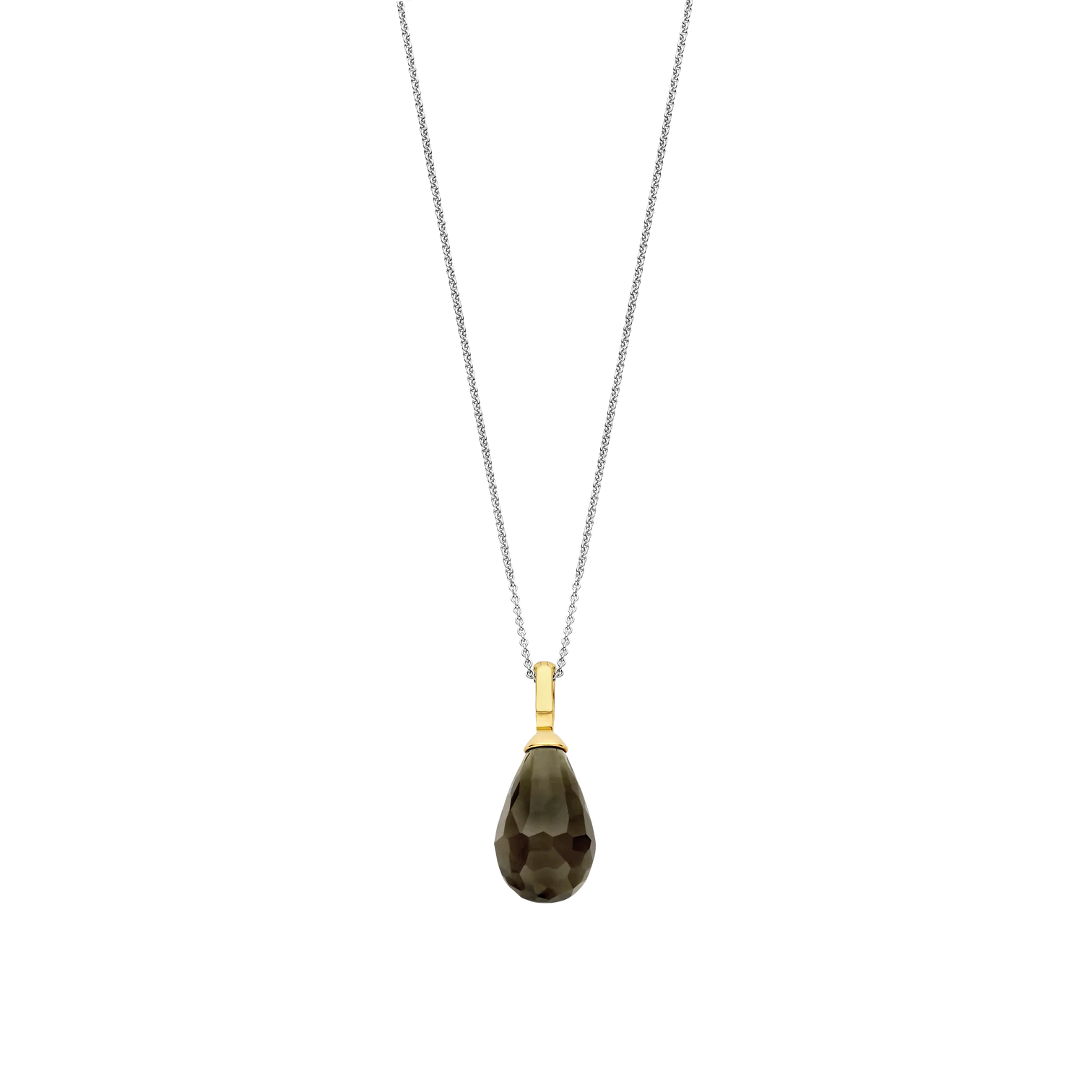 Collar TI SENTO modelo 6848KA de plata esterlina 925 con colgante con una piedra caqui translúcida de corte briolette forma la pieza central. largo 45cm