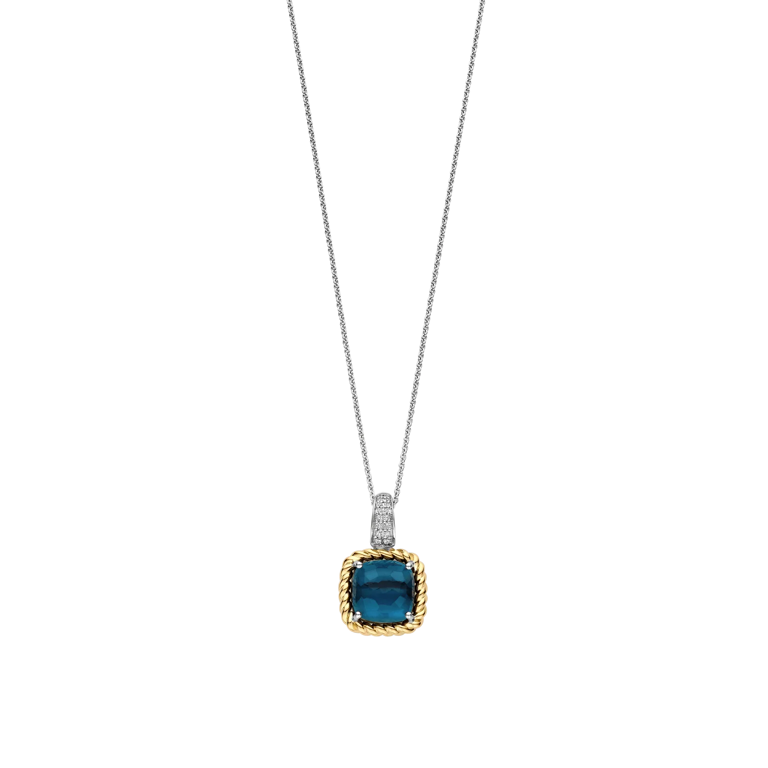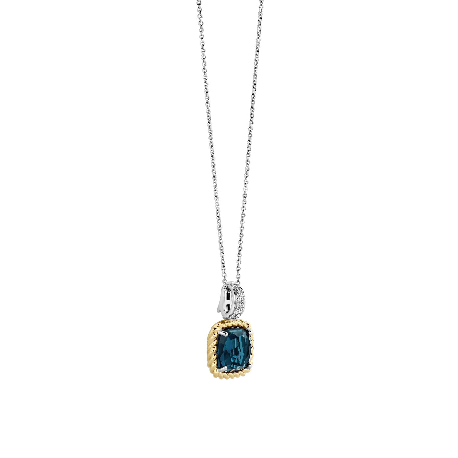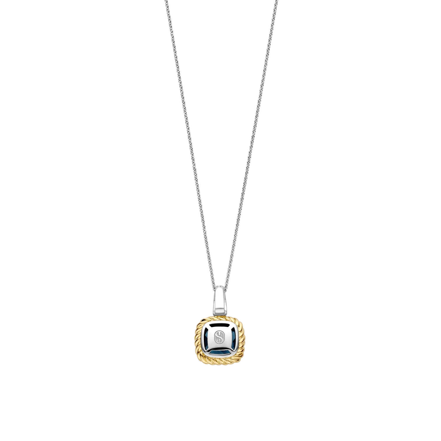 Collar TI SENTO modelo 6853DB de plata esterlina con colgante de una piedra en forma de cojín en azul oscuro translúcido, sutilmente facetada. Largo 45cm