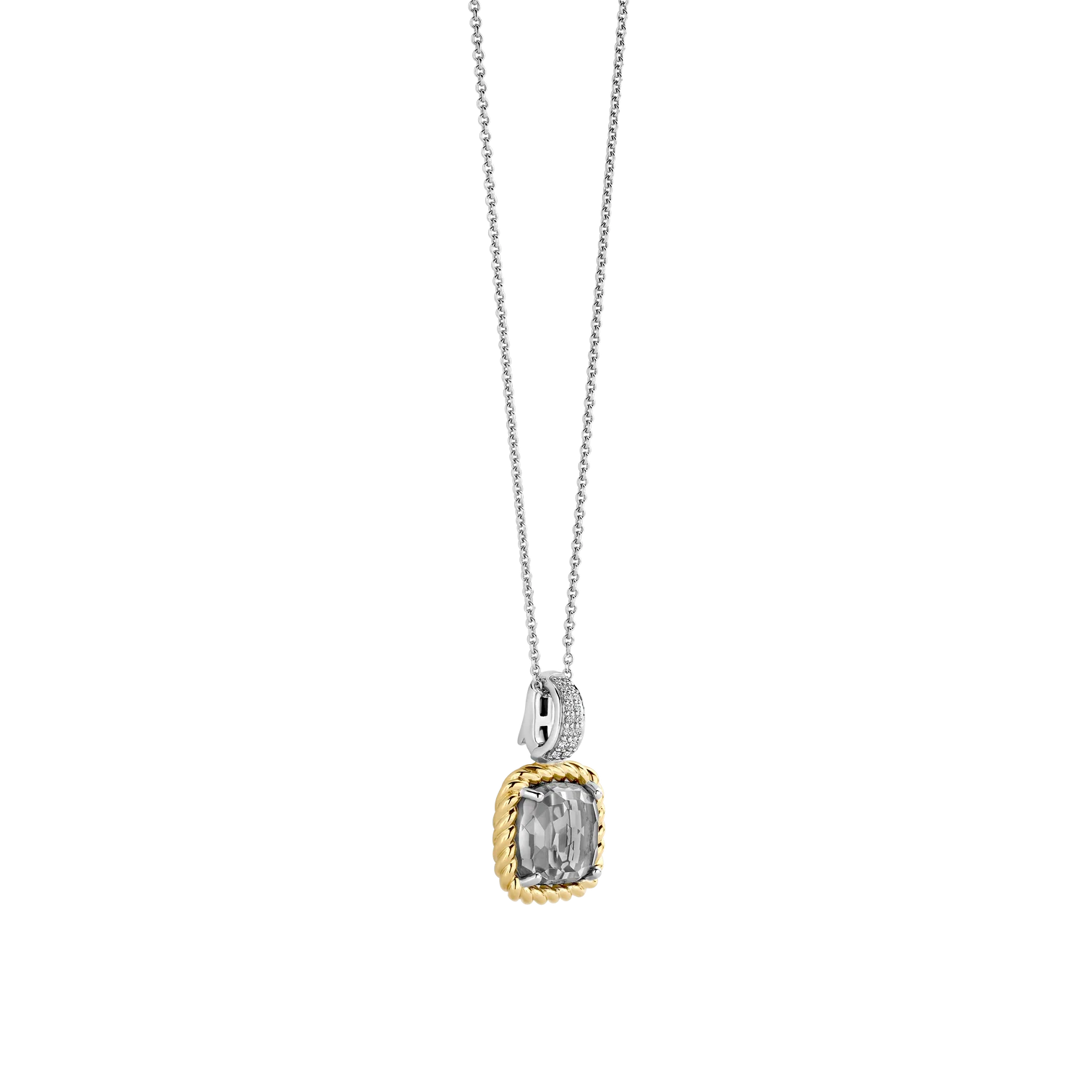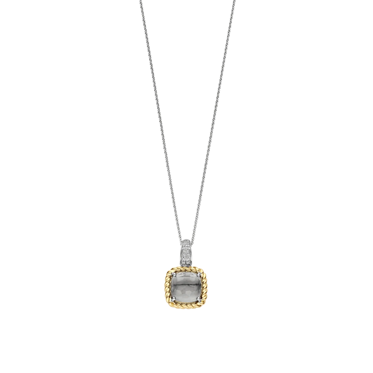 Collar TI SENTO modelo 6853gg de plata esterlina con cadena de eslabones y colgante con circonita gris facetada y recubrimiento de oro amarillo 18k.