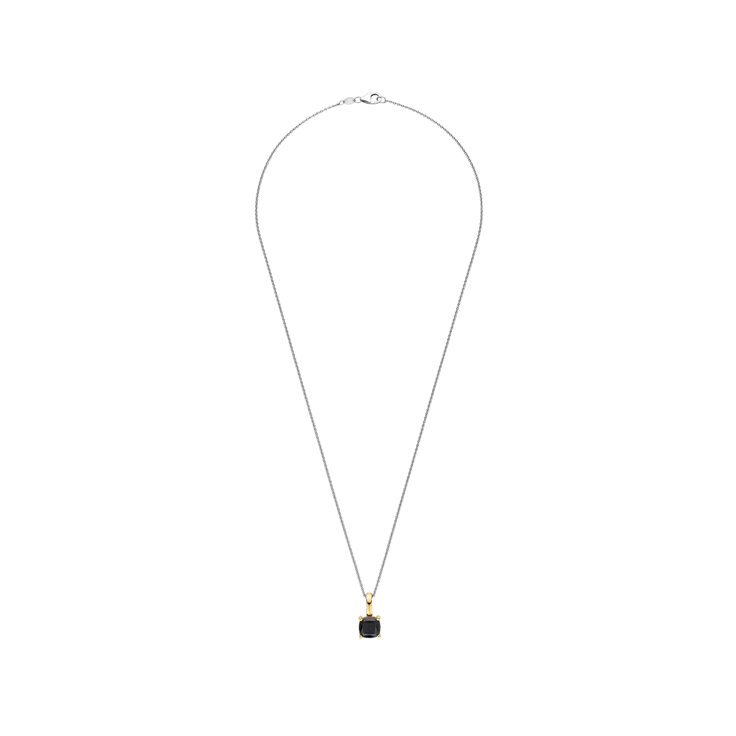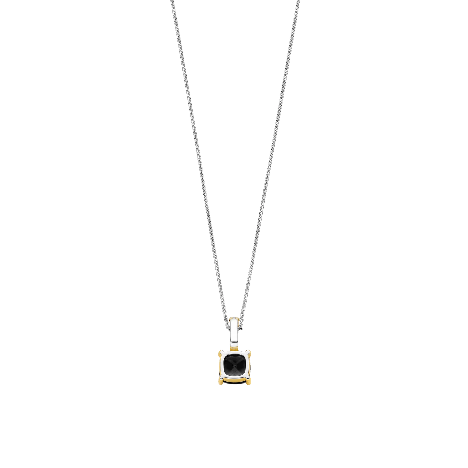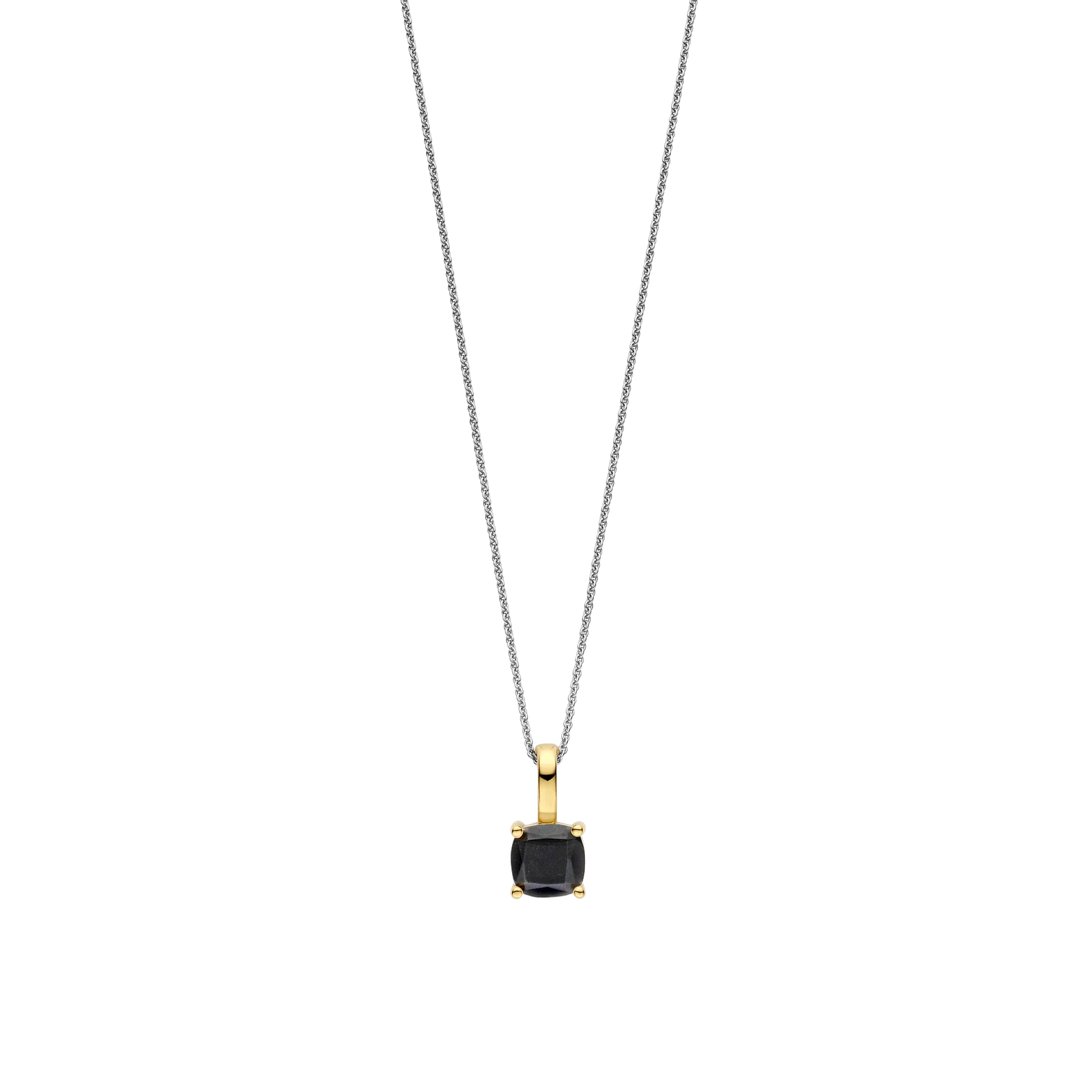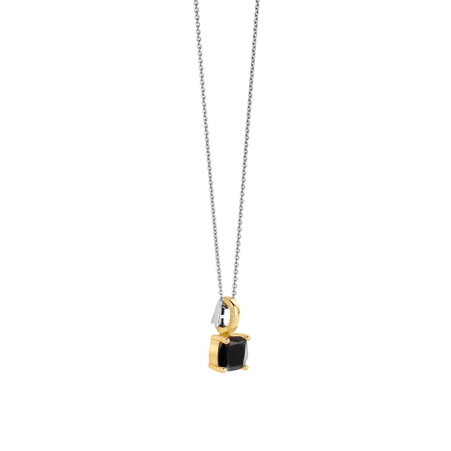 Collar TI SENTO modelo 6854ZY de plata esterlina 925 con un colgante con circonita cubica en tono negro engastada en grifa con recubrimiento en oro 18k. Largo 45cm