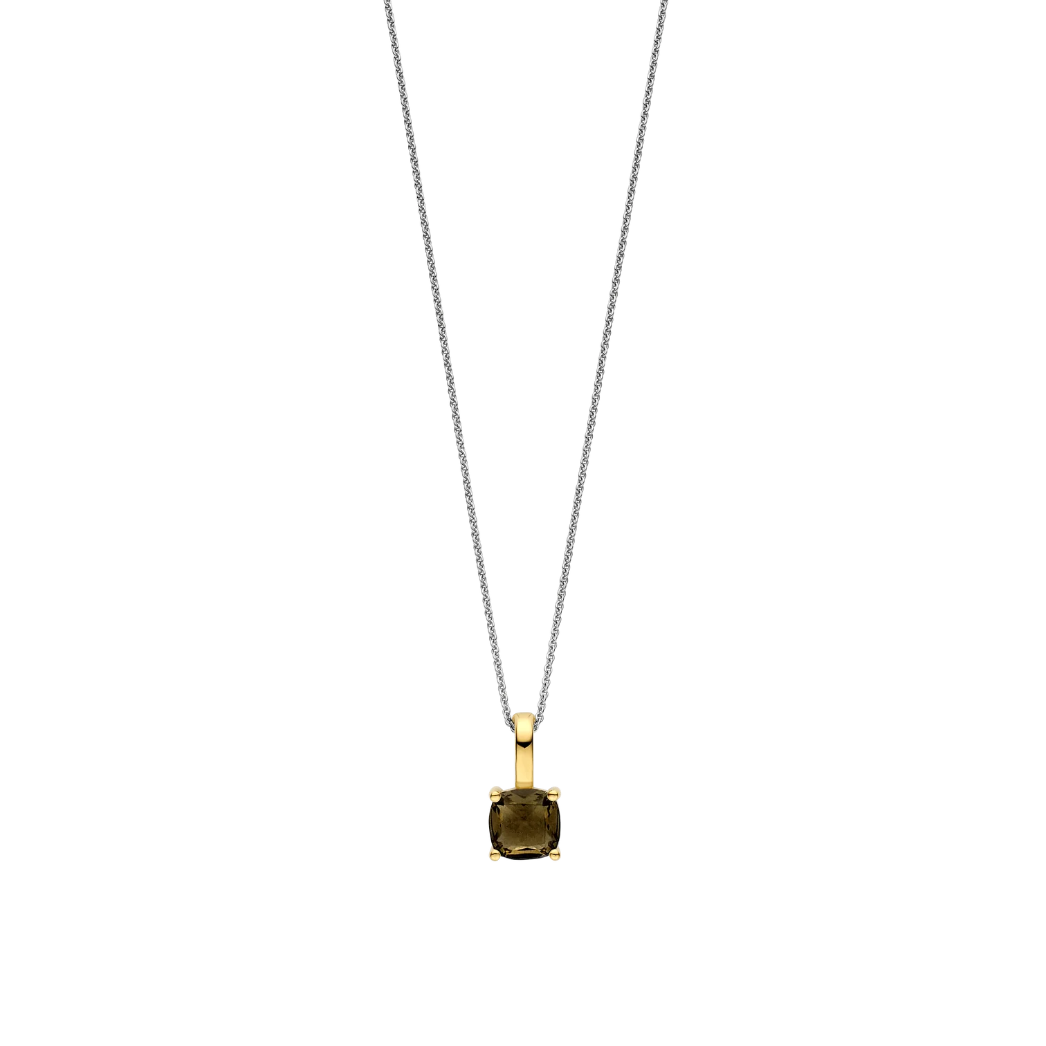 Collar TI SENTO modelo 6854ZY de plata esterlina 925 con un colgante con circonita cubica en tono Café engastada en grifa con recubrimiento en oro 18k. Largo 45cm