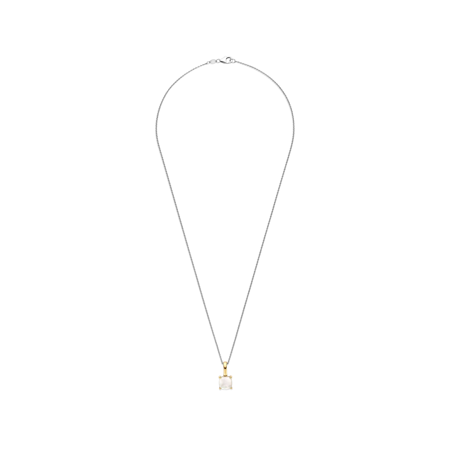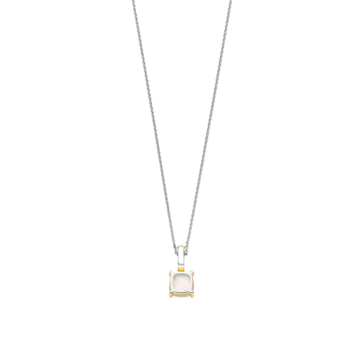 Collar TI SENTO modelo 6854MW de plata esterlina 925 con un colgante con circonita cubica en tono blanco lechoso engastada en grifa con recubrimiento en oro 18k. Largo 45cm