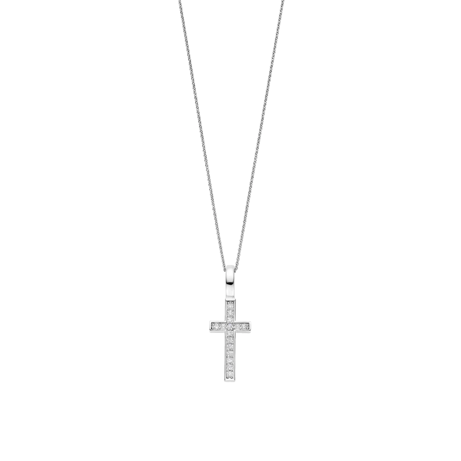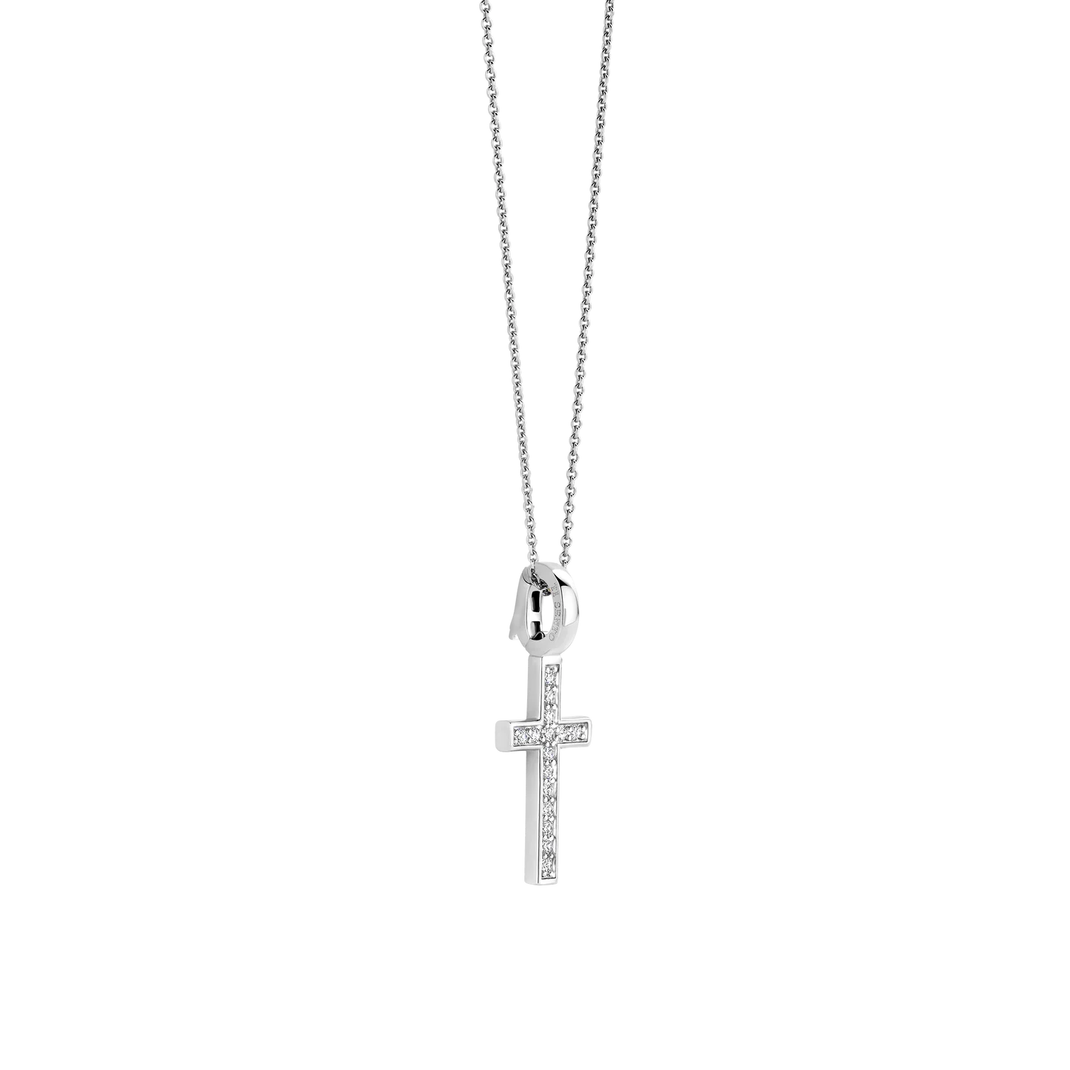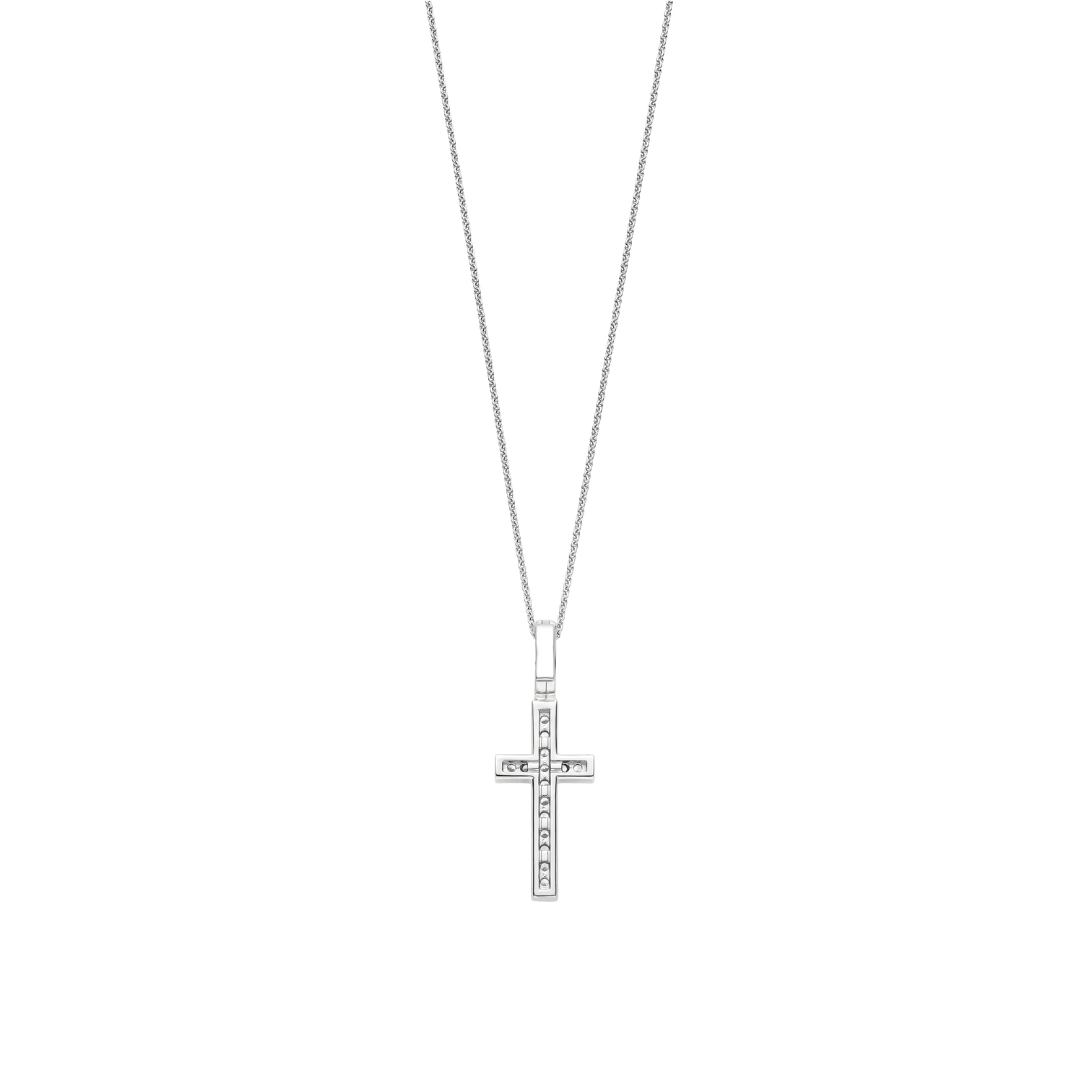 Collar TI SENTO de plata esterlina 925 con recubrimiento de platino con colgante de cruz con circones en pave. Largo 45cm