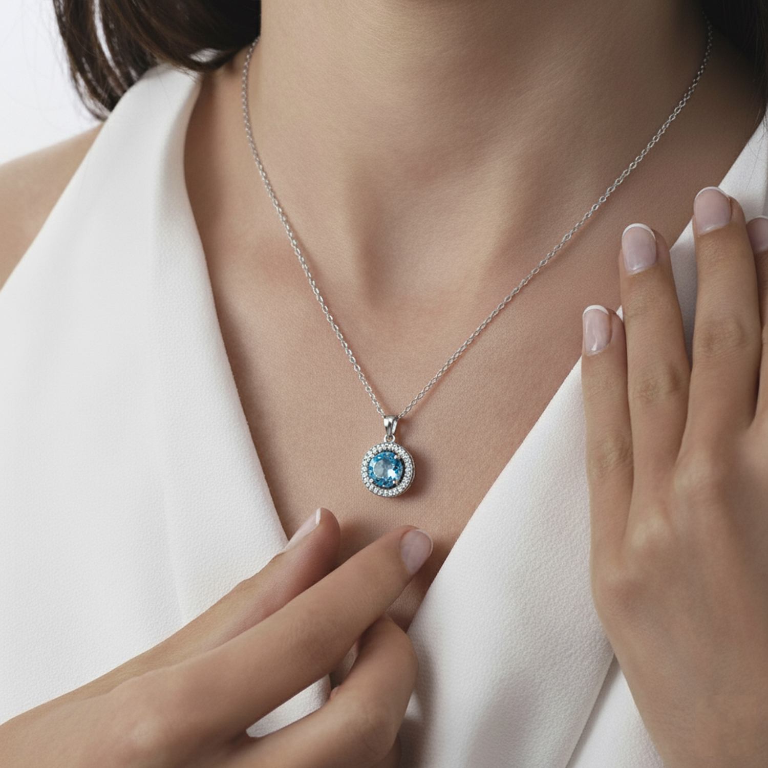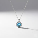 Collar topacio Azul Natural con Halo en Pave