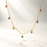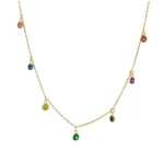 Collar de Plata esterlina con recubrimiento en oro amarillo 18k con circonitas cubicas de colores engastadas en bisel. Largo. 45cm