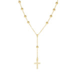 Collar de plata esterlina con recubrimiento en oro amarillo 18k con diseño de rosario con cuentas diamantadas y circonita cubica blanca en pave.