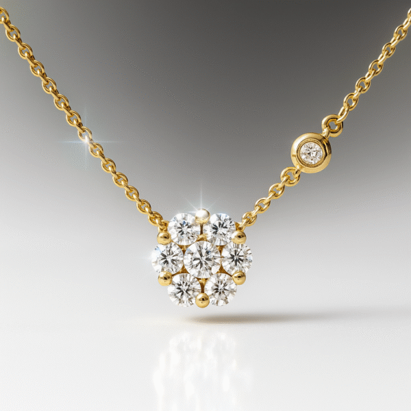 Collar Oro Amarillo 18K Corazón, Flor Y Disco – 45Cm