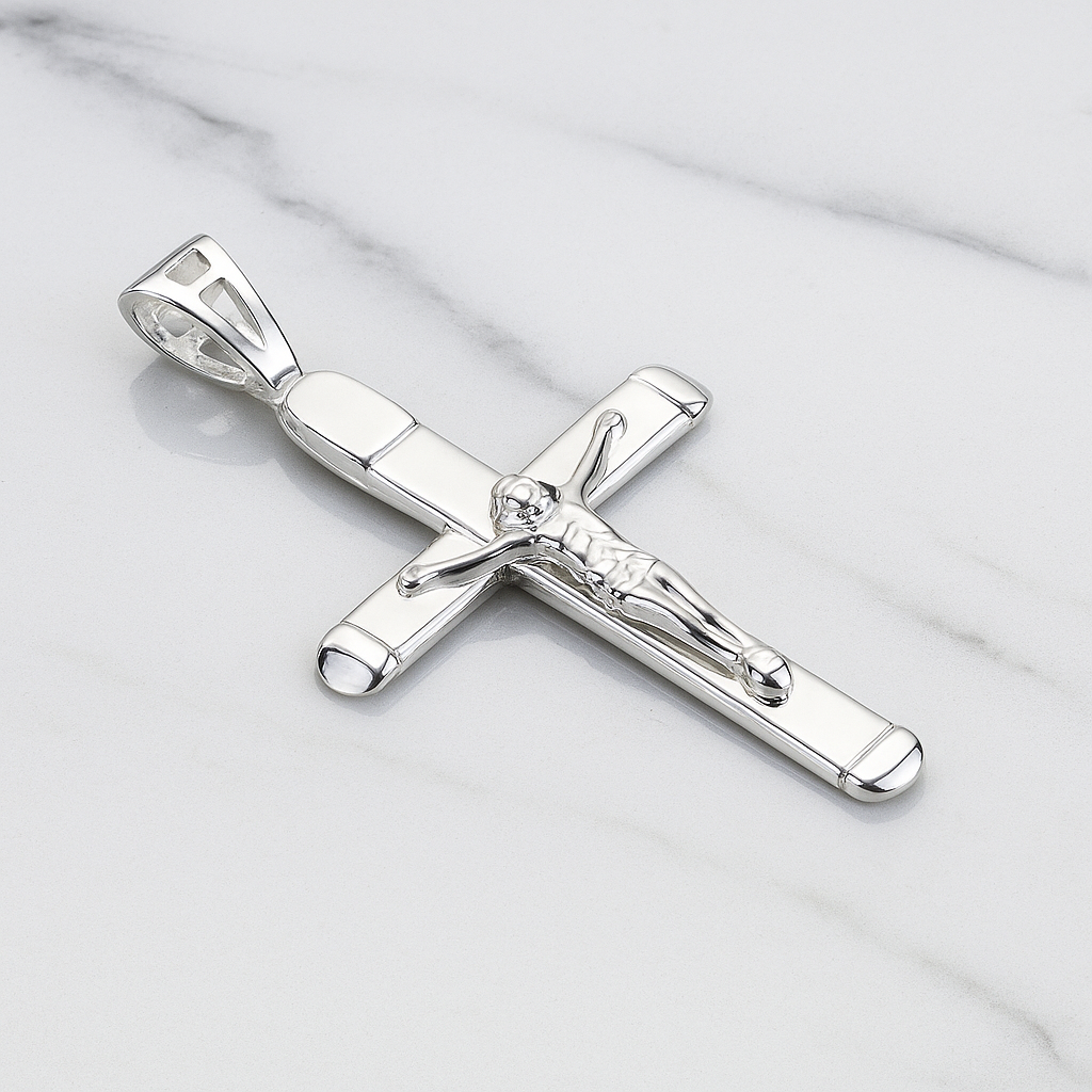 CRUCUFIJO DE ORO BLANCO 18K 35mm x 15mm