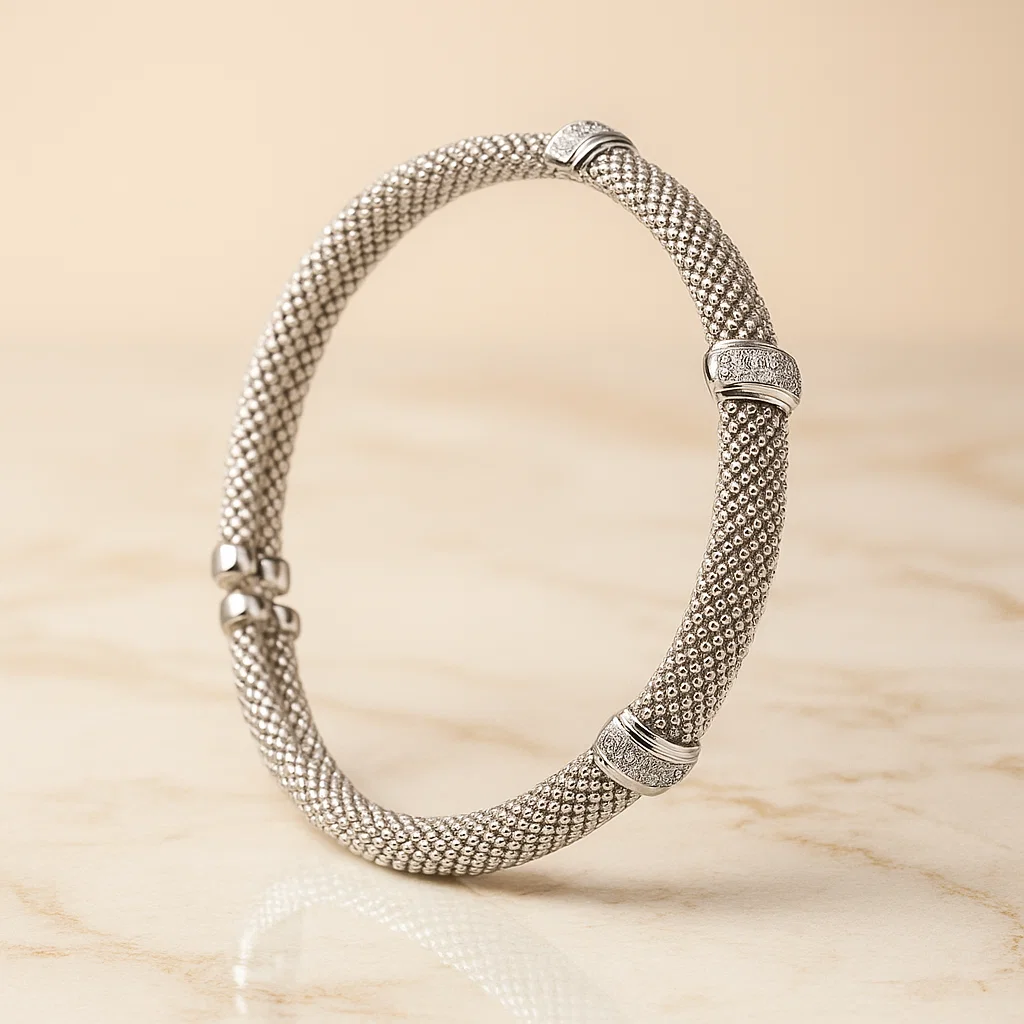 Esclava con diseño de bolitas en plata 925 con detalles brillantes de circonita suiza.