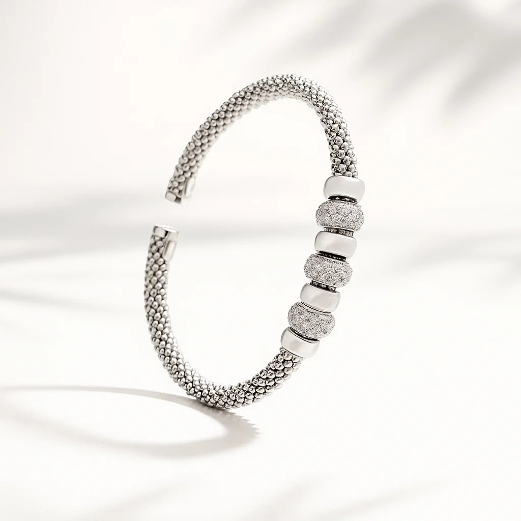 Esclava colección Essenza diseño fope en plata 925 y bolitas de plata intercaladas con bolitas en pavé de circonita suiza.