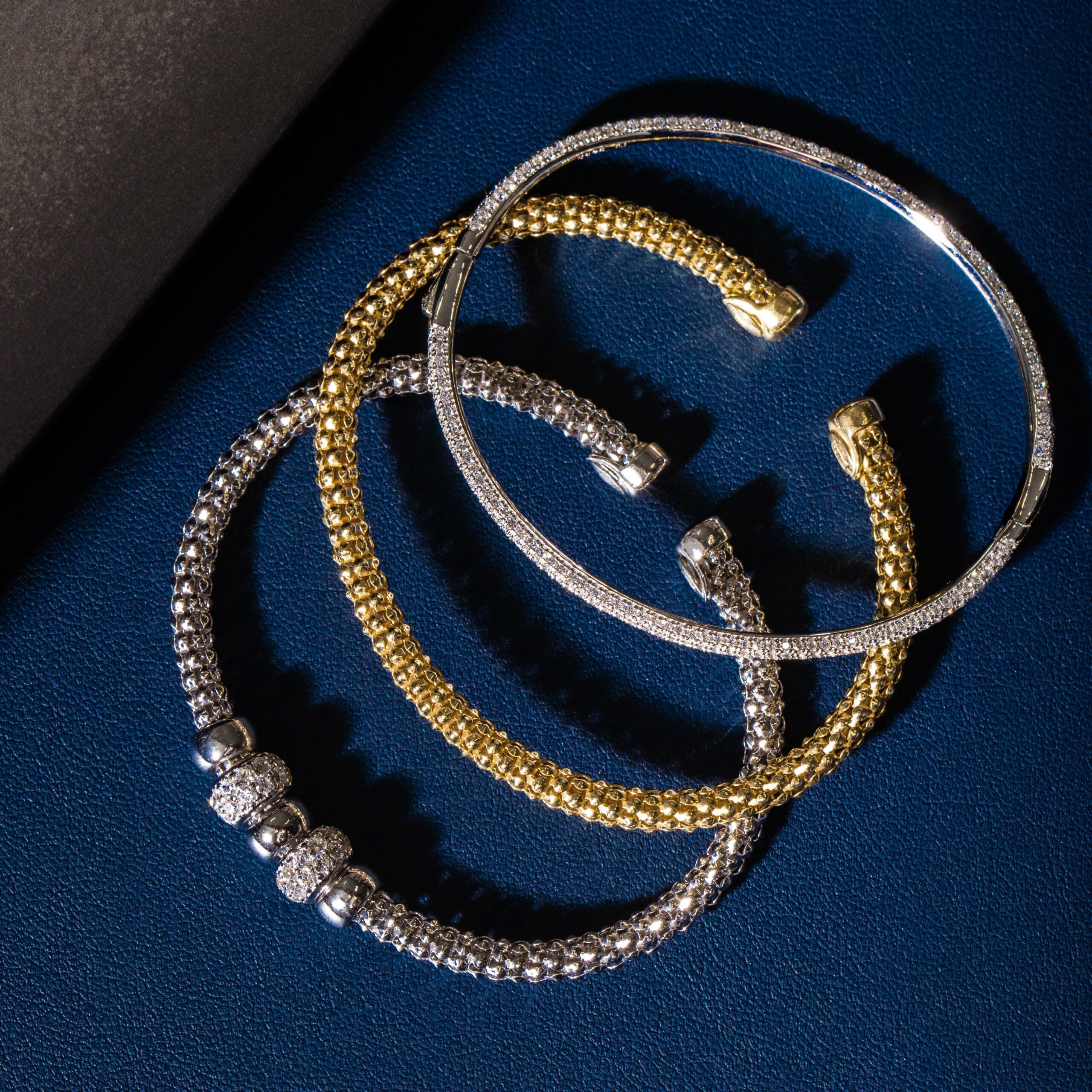 Esclava colección Essenza diseño fope en plata 925 y bolitas de plata intercaladas con bolitas en pavé de circonita suiza.