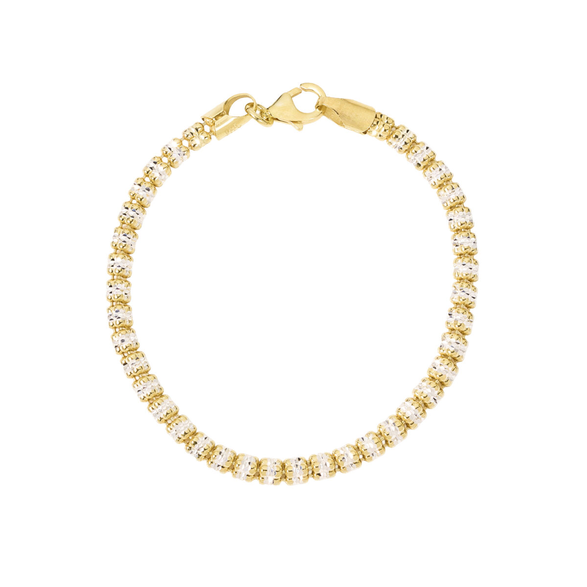 Pulsera de plata esterlina con recubrimiento de oro amarillo 18k, diseño de cuentas diamantadas con pequeños cortes para dar brillo con broche mosquetón. Largo 18cm