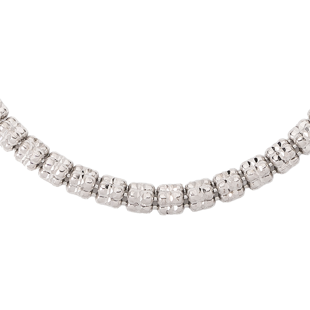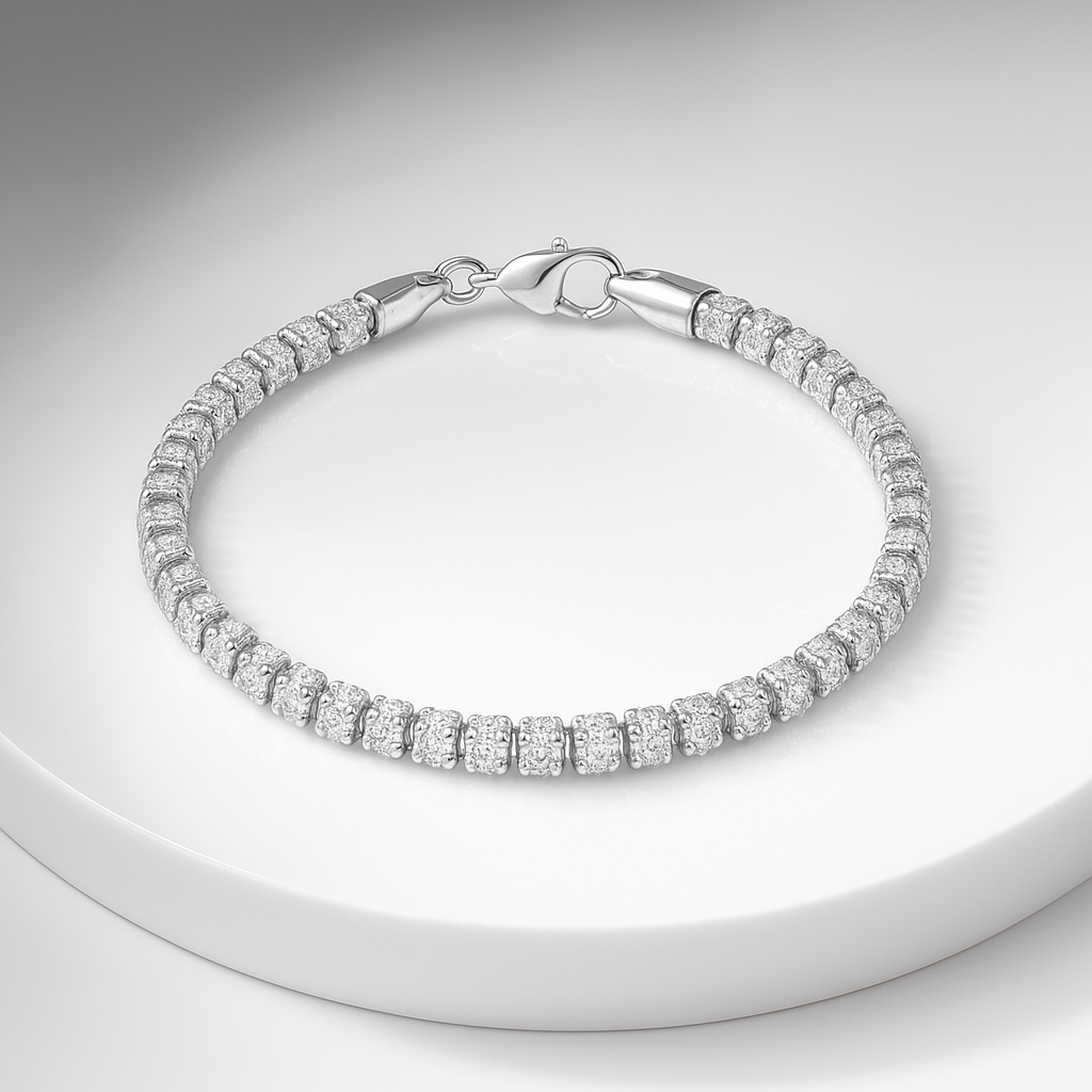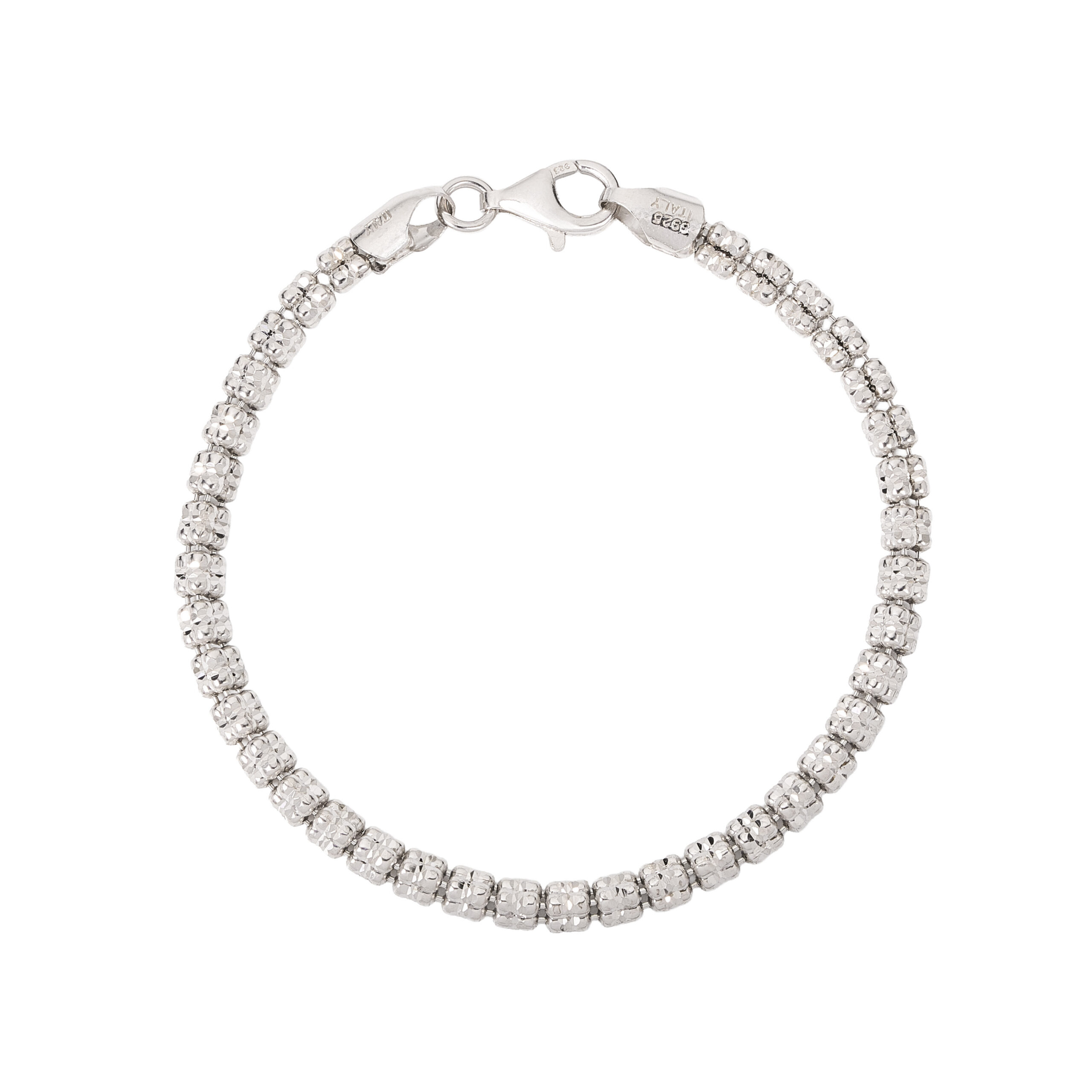 Pulsera de plata esterlina, diseño de cuentas diamantadas con pequeños cortes para dar brillo con broche mosquetón. Largo 18cm