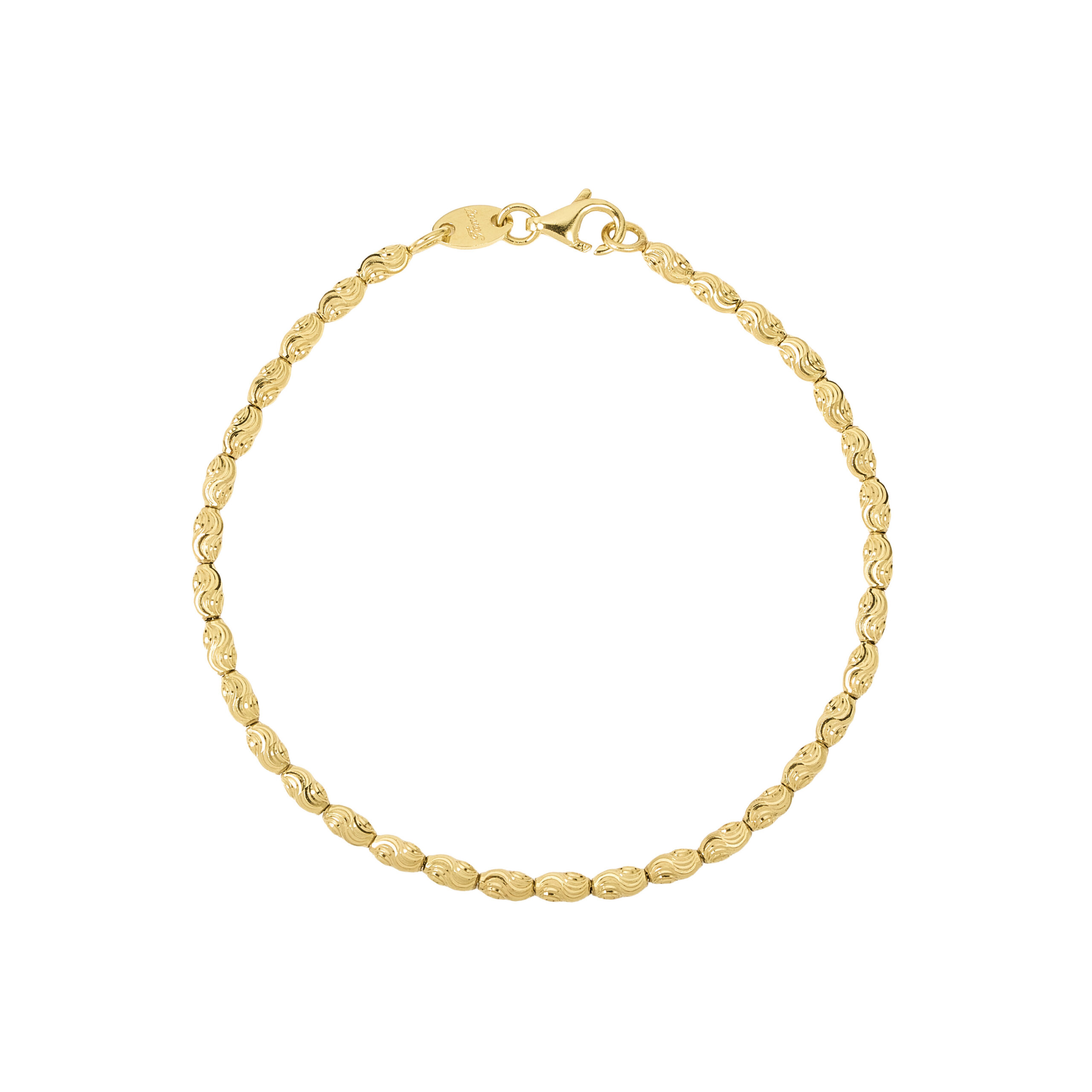 Pulsera de oro amarillo 18k con diseño de bolitas de oro con cortes diamantados para que se vean brillantes. Largo 19cm.