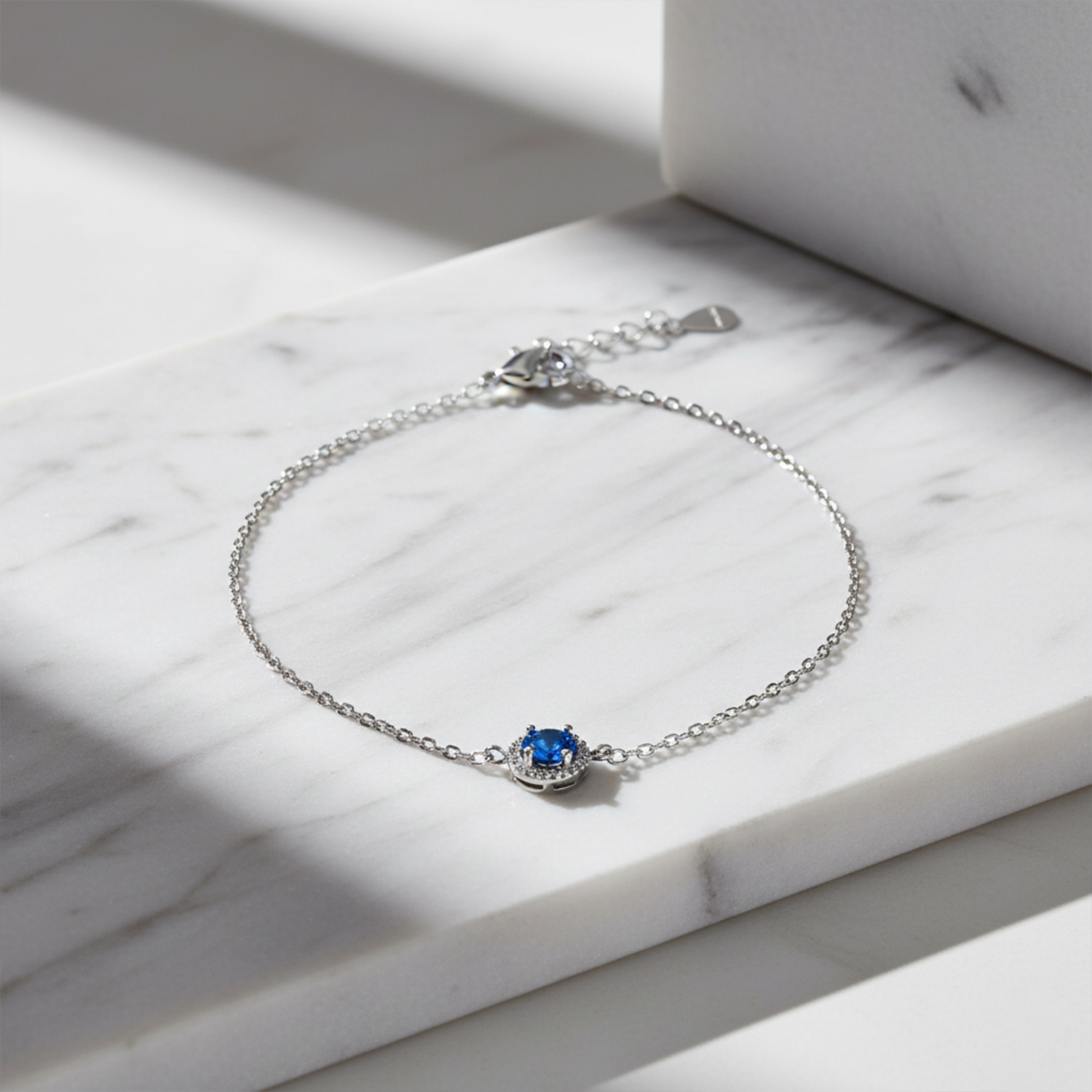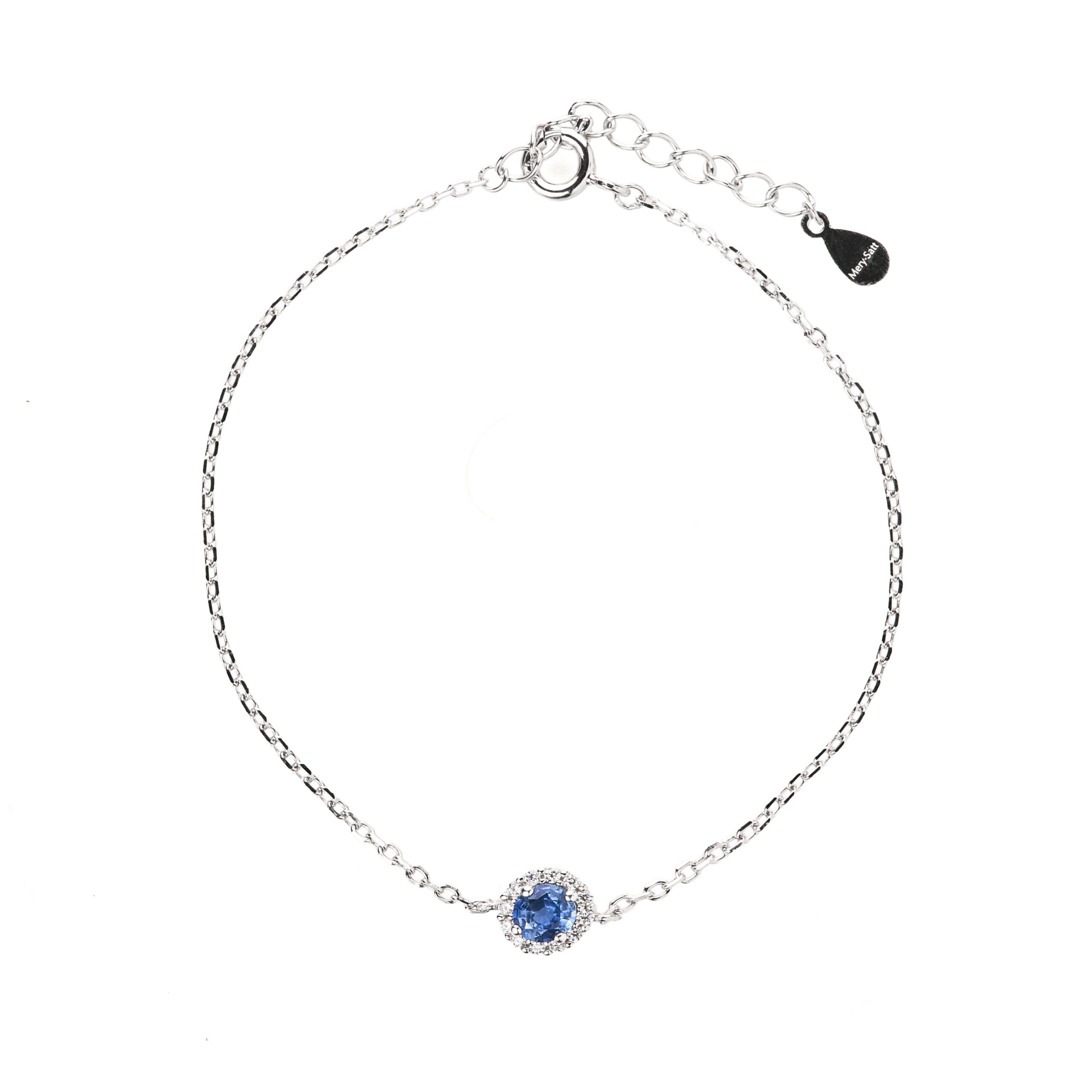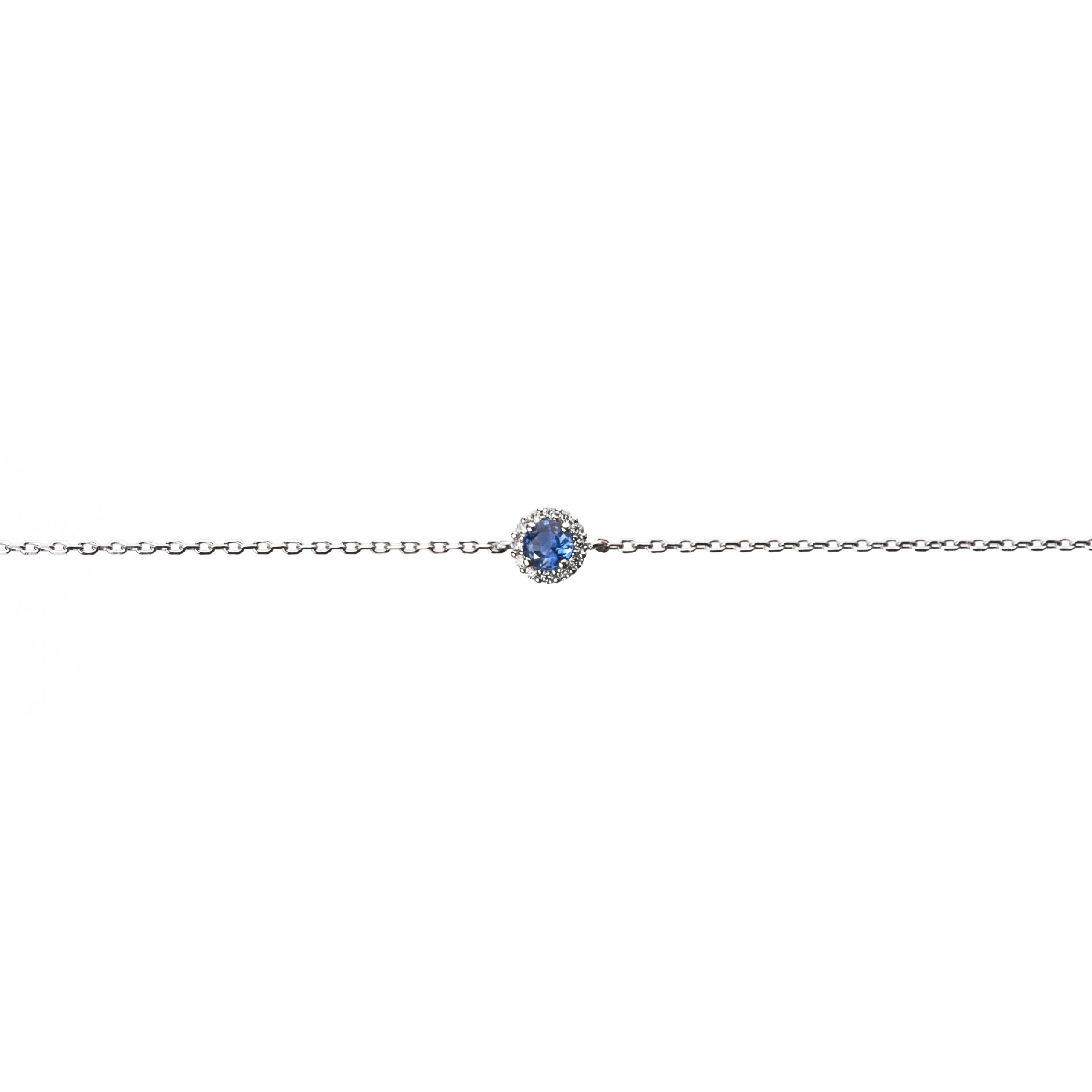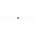 Pulsera de zafiro natural corte redondo y un halo de circones, de  plata 925 con diseño de eslabones tradicional con un Largo 20cm.