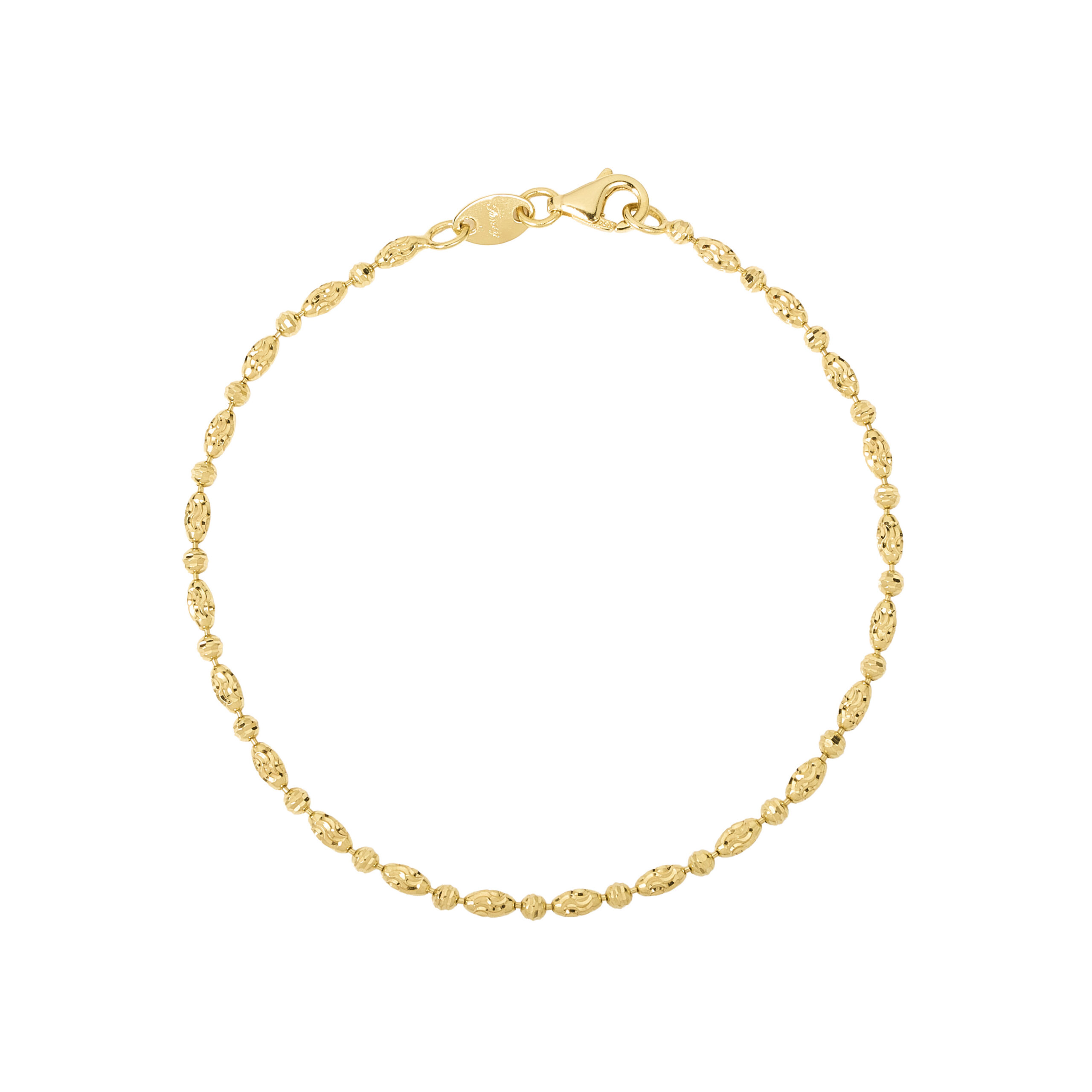 Pulsera de oro amarillo 18k con diseño de bolitas de oro con cortes diamantados para que se vean brillantes. Largo 19cm.